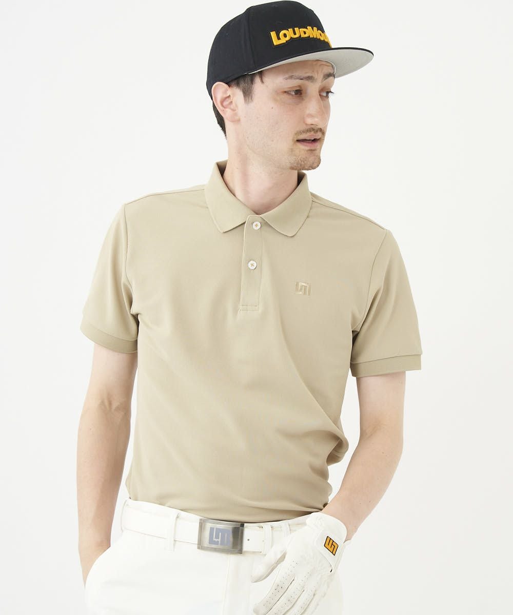 ラウドマウスロゴが同色系で落ち着いたカラーリングの無地半袖ポロシャツ。