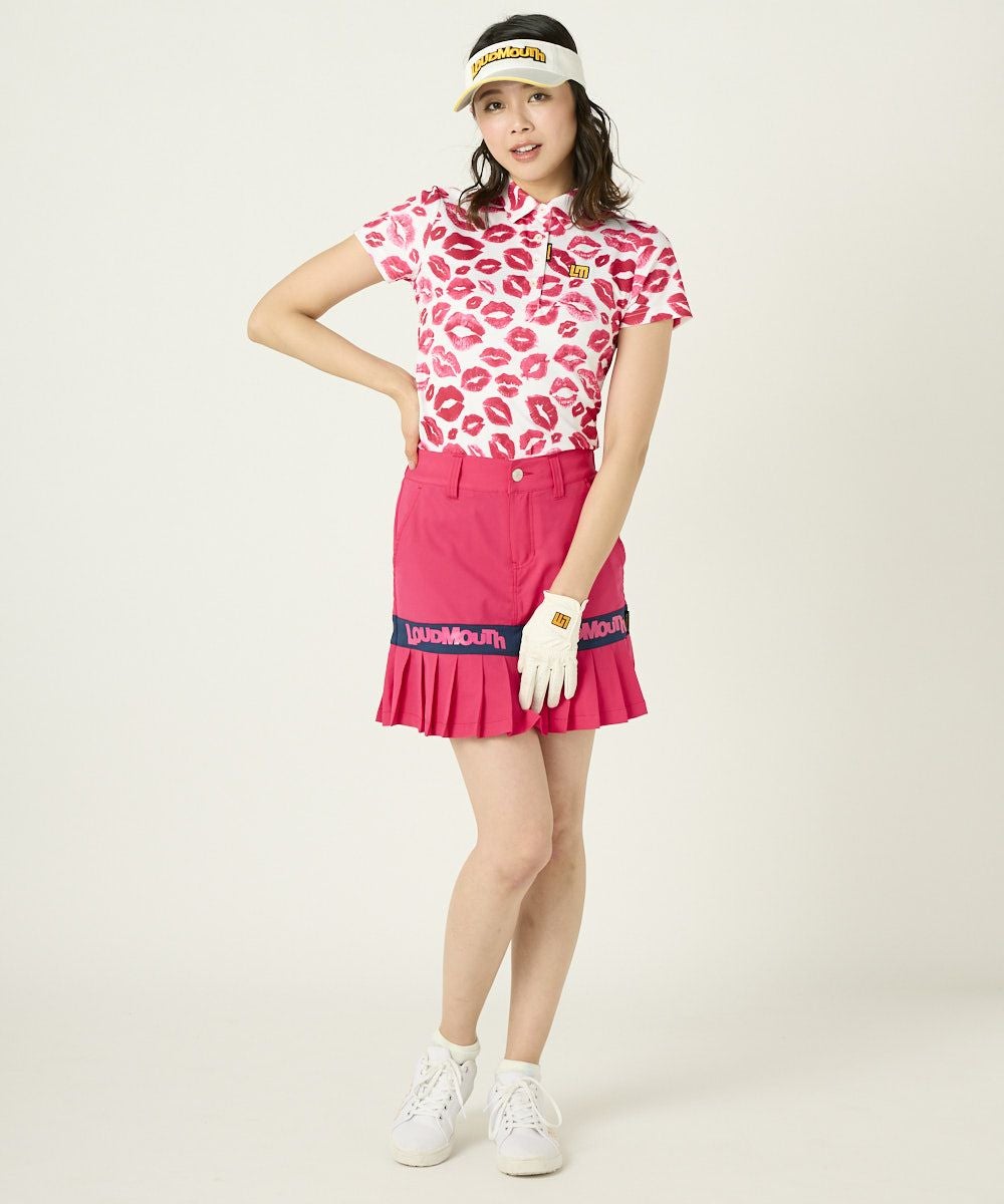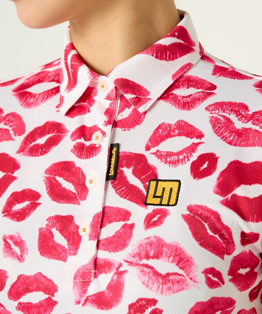 レディース 半袖ポロシャツ フリージングスキン素材 キッス柄 ピンク 吸汗速乾/UV/接触冷感