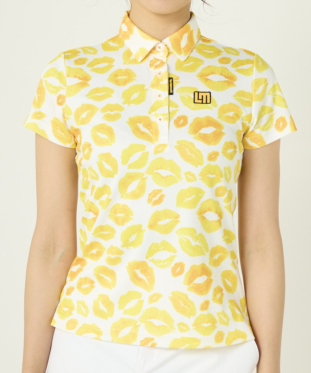 レディース 半袖ポロシャツ フリージングスキン素材 キッス柄 イエロー 吸汗速乾/UV/接触冷感