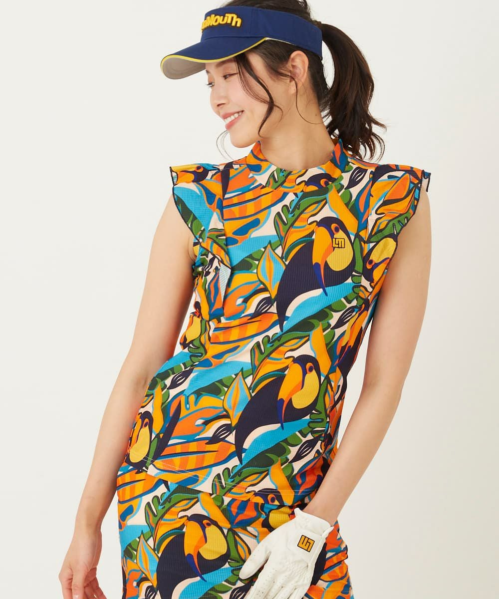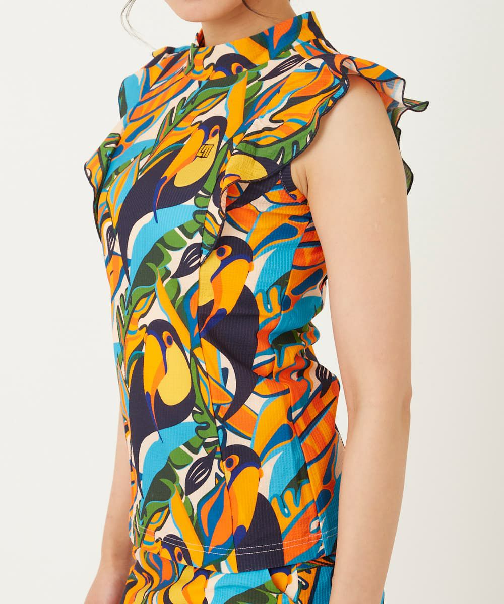 レディース ノースリーブシャツ ストレッチサッカー素材 トロピカルトゥーカンズ UV/ストレッチ/接触冷感