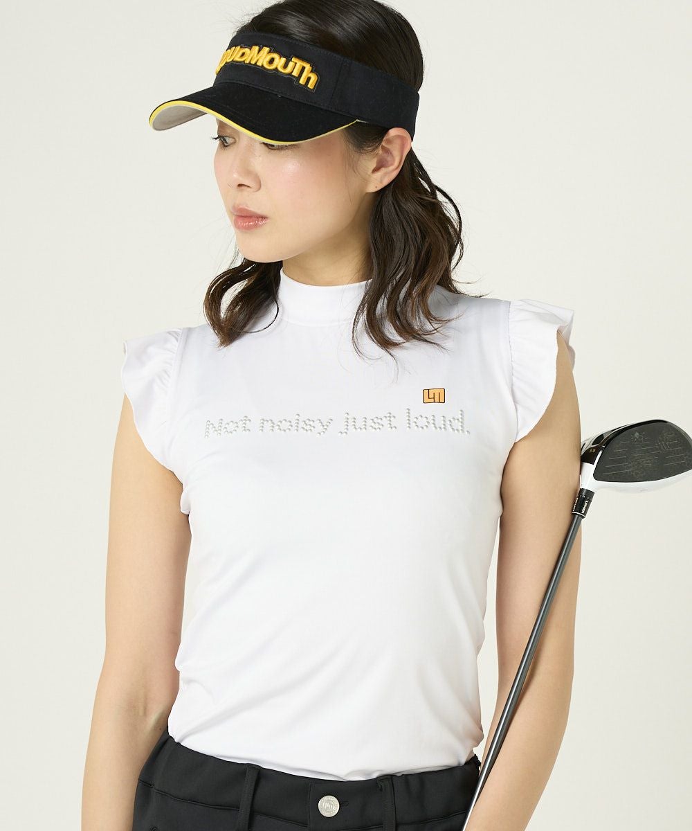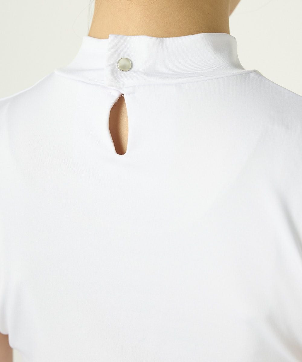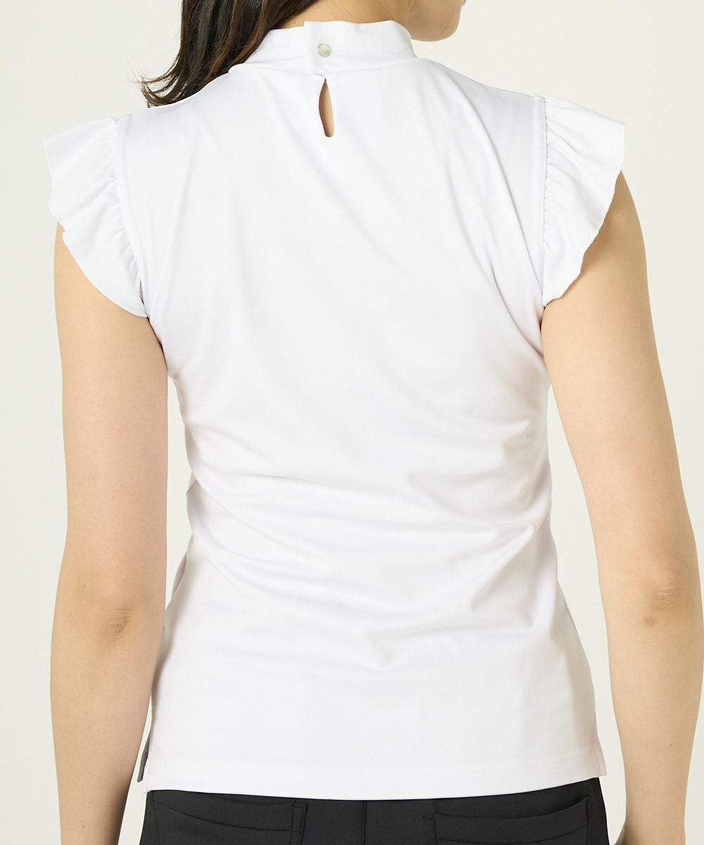 レディース ノースリーブモックネックシャツ ECOスムース素材 ホワイト 吸汗速乾/UV/接触冷感
