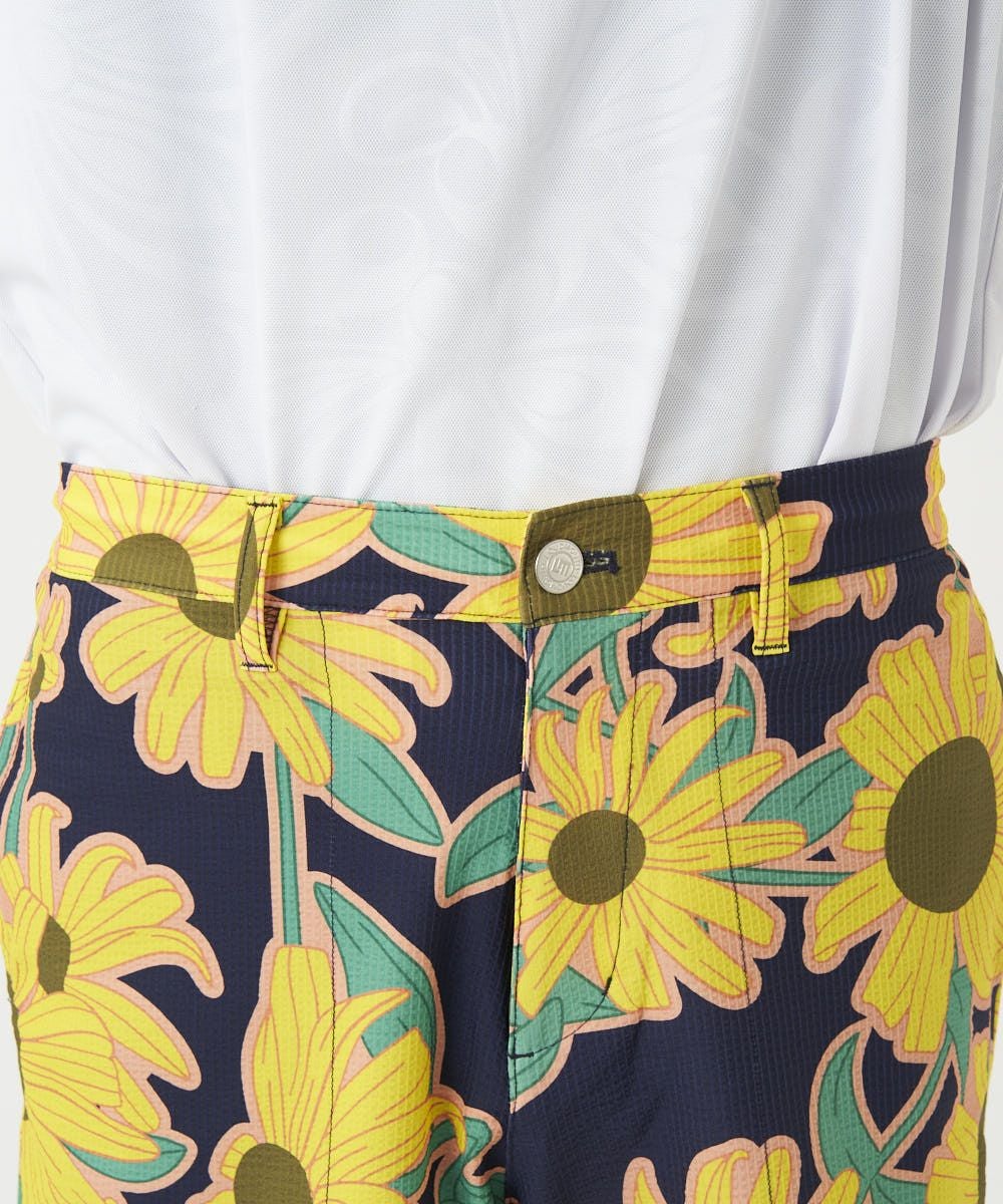 メンズ ストレッチサッカー 柄ショートパンツ Retro Helianthus/レトロヘリアンサス
