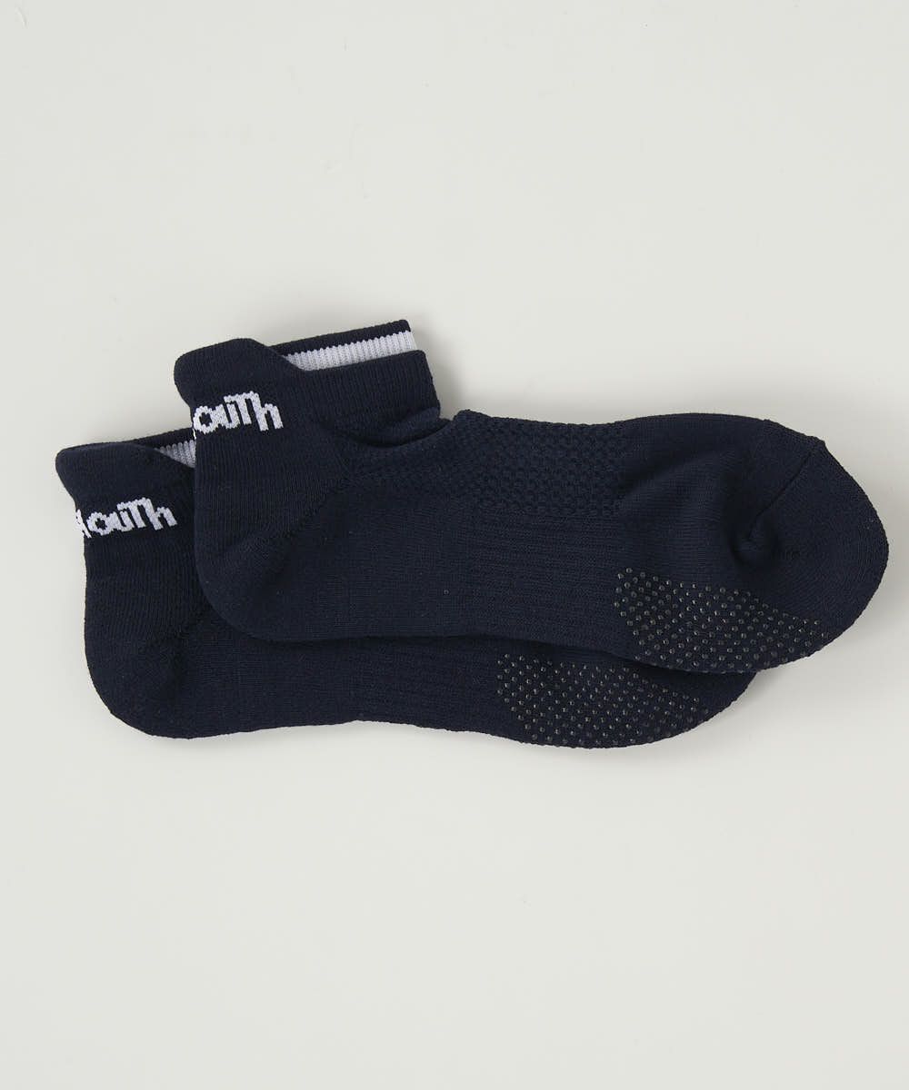 どんなコーディネートにも合わせられる定番のメンズ無地アンクルソックス。底面には滑り止めをプリントしています。