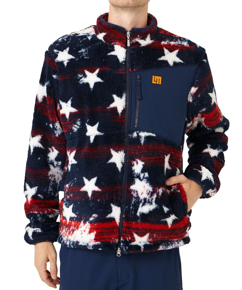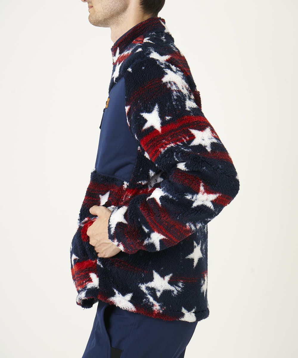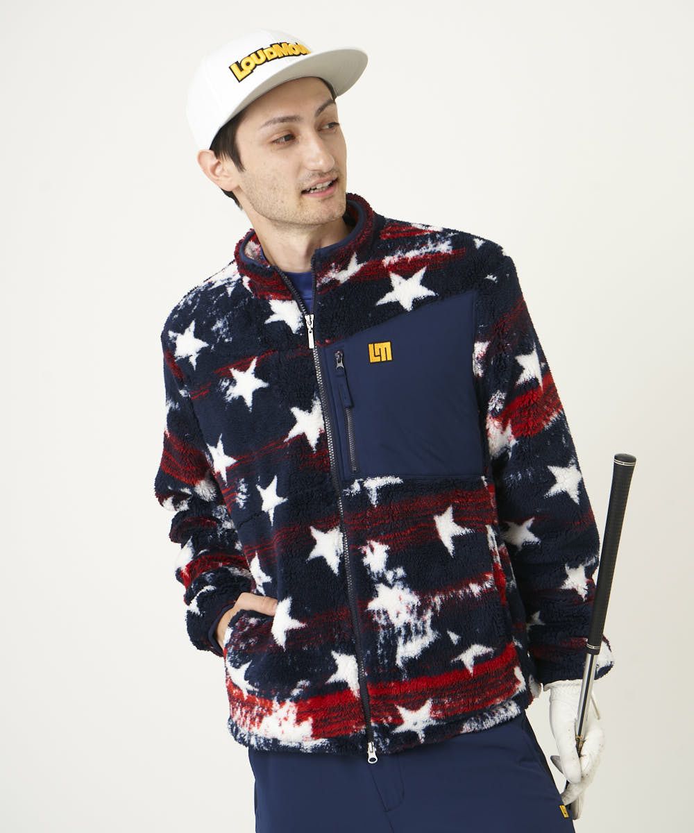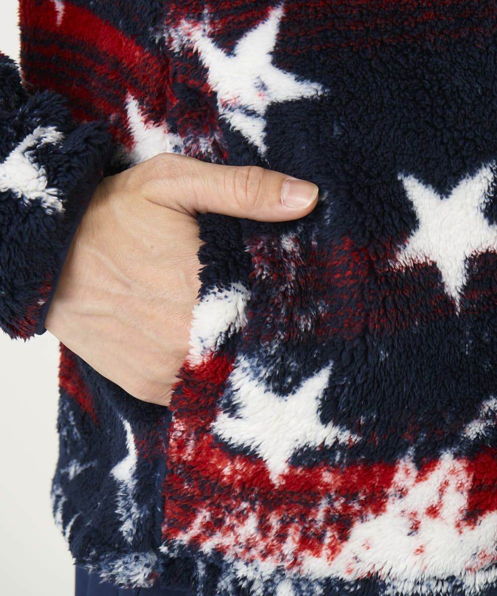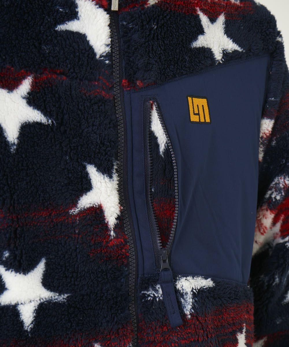 人気のあるStar 柄プリントのボアフリースジャケット。ボアフリース素材と裏地には発熱シルバーフィルムを使用しているので保温性抜群です。マスクや小物を収納できる胸ポケット仕様。