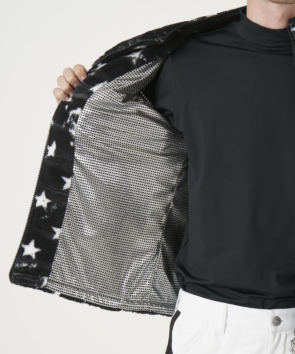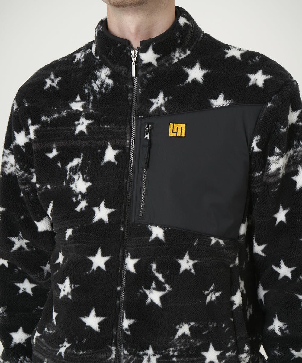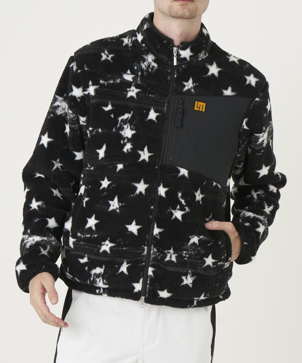 人気のあるStar 柄プリントのボアフリースジャケット。ボアフリース素材と裏地には発熱シルバーフィルムを使用しているので保温性抜群です。マスクや小物を収納できる胸ポケット仕様。