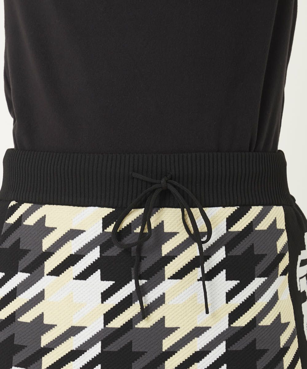 レディース 裏蓄熱軽量ニットスカート 千鳥柄 ブラック