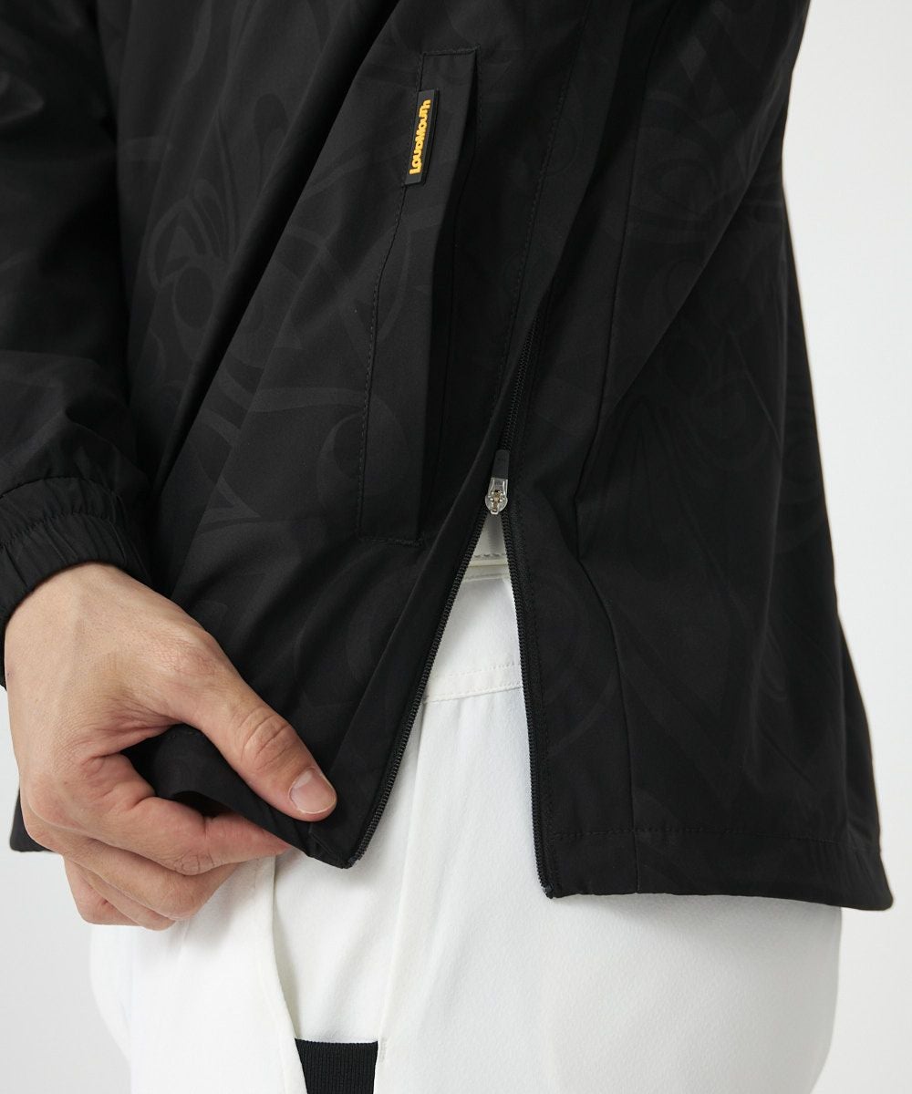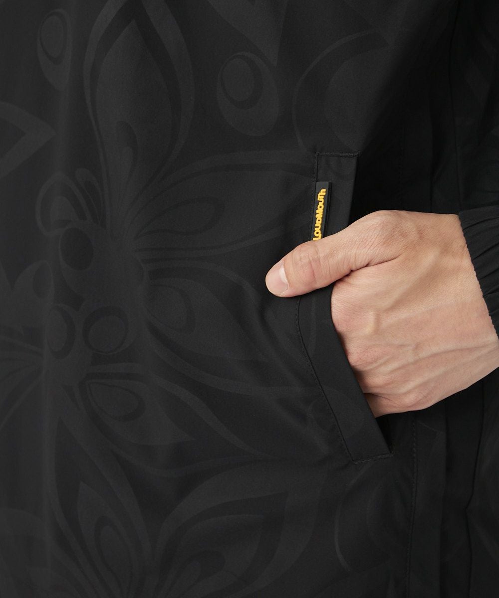 LOUDMOUTHらしいシャガデリックのトーンオントーン柄のストレッチタフタのプルオーバー。衿のリブを肩まで入れることで着脱しやすく、オールシーズンで使える仕様で一枚あるとコーディネートしやすいアイテムです。