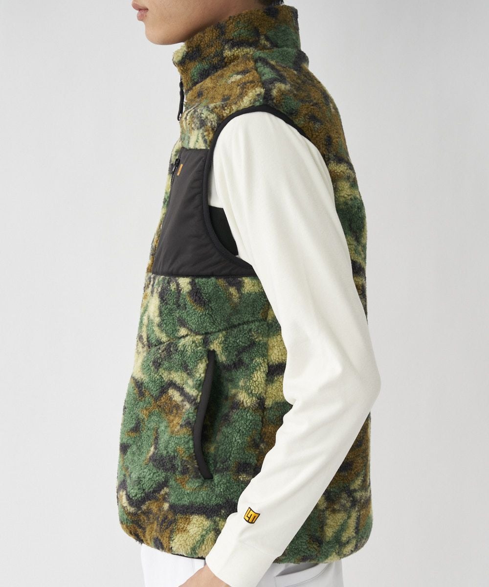 人気の高いタグス柄をボアにプリントしたベスト。 ストレッチ性の高いボアフリース素材と裏地には発熱シルバーフィルムを使用しているので保温性抜群です。