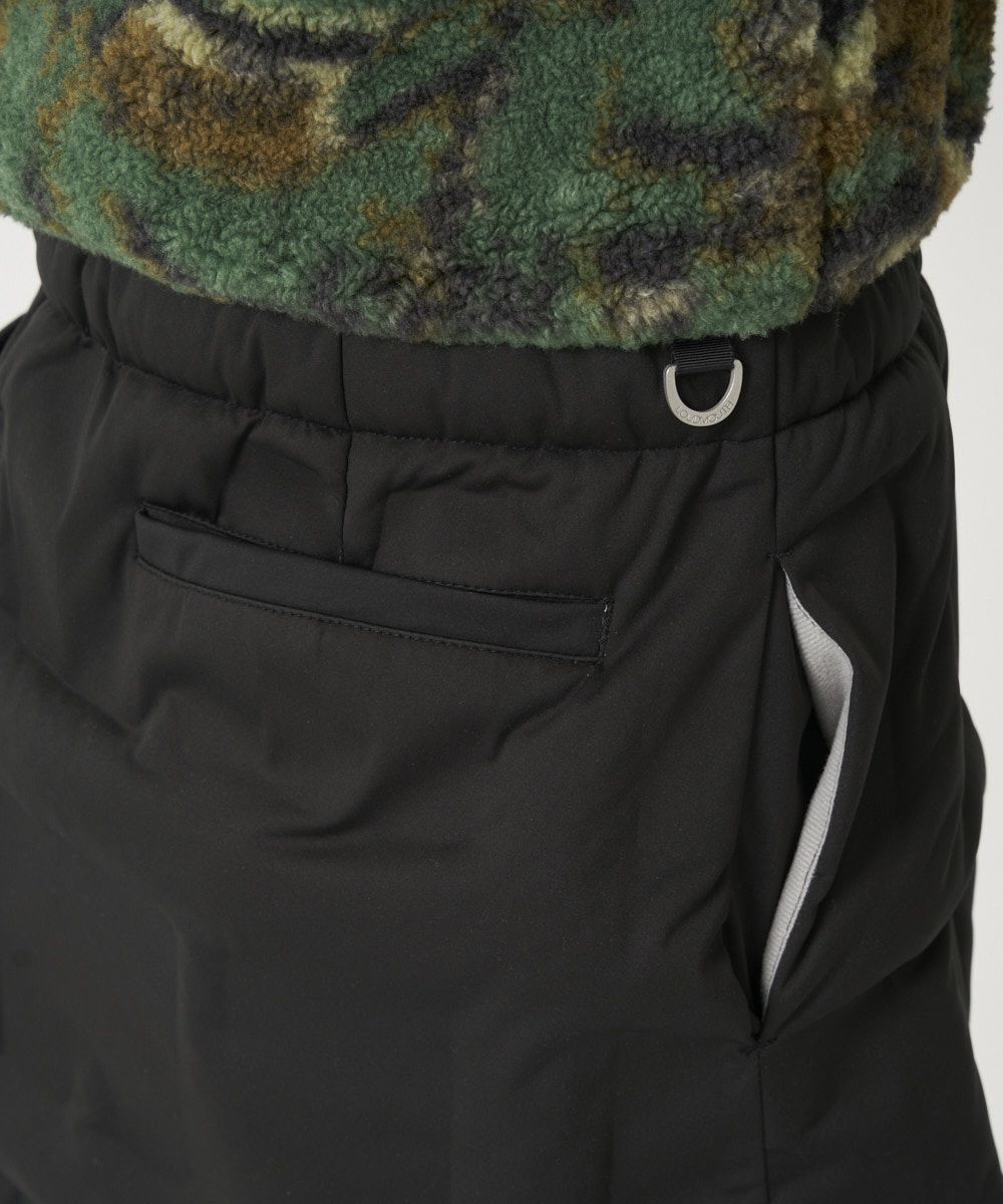 キルト・フード: 表側:ポリエステル100% 中わた:ダウン80% フェザー20% 裏側:ポリエステル100% ボア:ポリエステル100% 裏地:ポリエステル100% リブ:ポリエステル95% ポリウレタン5%