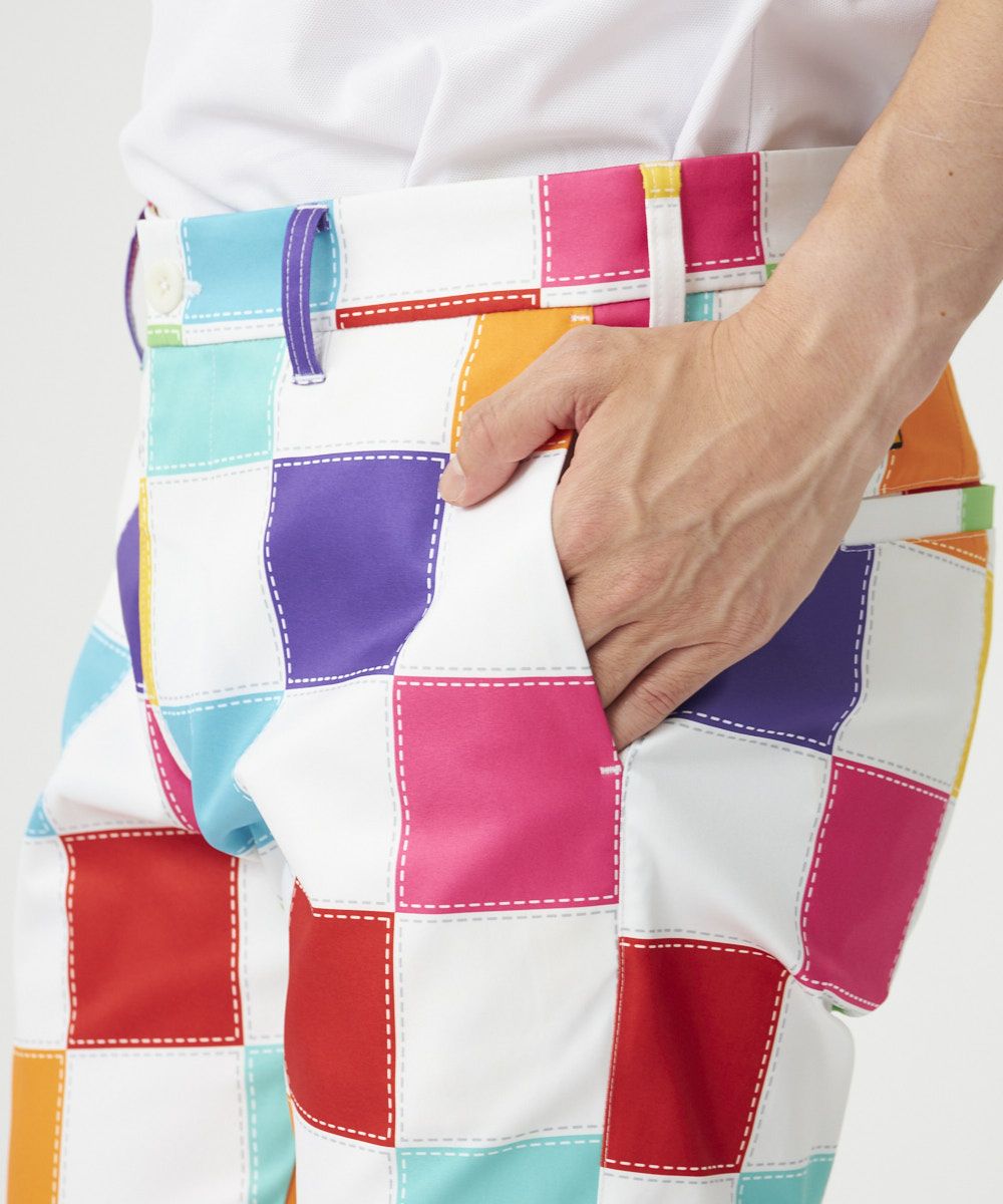動きやすいポリエステルツイル素材を使用した柄パンツ。 今シーズンのインパクトのある8柄を展開しています。