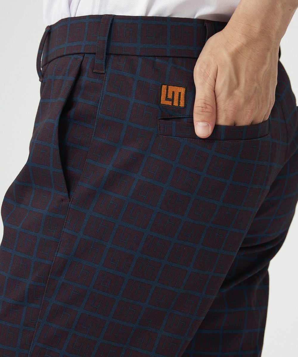 日本製の上質な生地を使用し、同系色のLMロゴカラーを重ねたオリジナル柄のロングパンツ。無地とは異なる高級感のあるデザインが特徴です。縦横に伸びる4WAYスーパーストレッチ素材、撥水加工、UVカット、毛玉のできにくい抗ピリング加工など、機能性にもこだわった至極の一枚。
