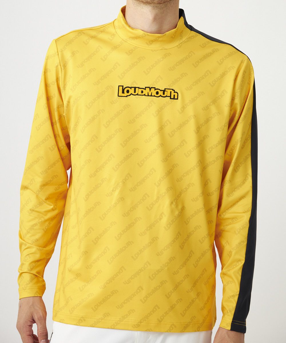 サスティナブルを意識したリサイクルポリエステルの裏起毛素材を使用。 流行りのモックネックシャツ。 コーディネートしやすいトーンオントーン配色で入れたブランドロゴ柄と配色ラインがデザインポイントです。