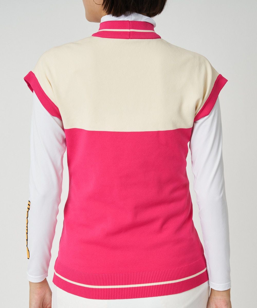 軽くて動きやすい軽量ニット。 配色LOGOデザインのフレンチベストとインナーのセットアイテムです。 ニットスカートとコーディネートしやすい配色展開です。