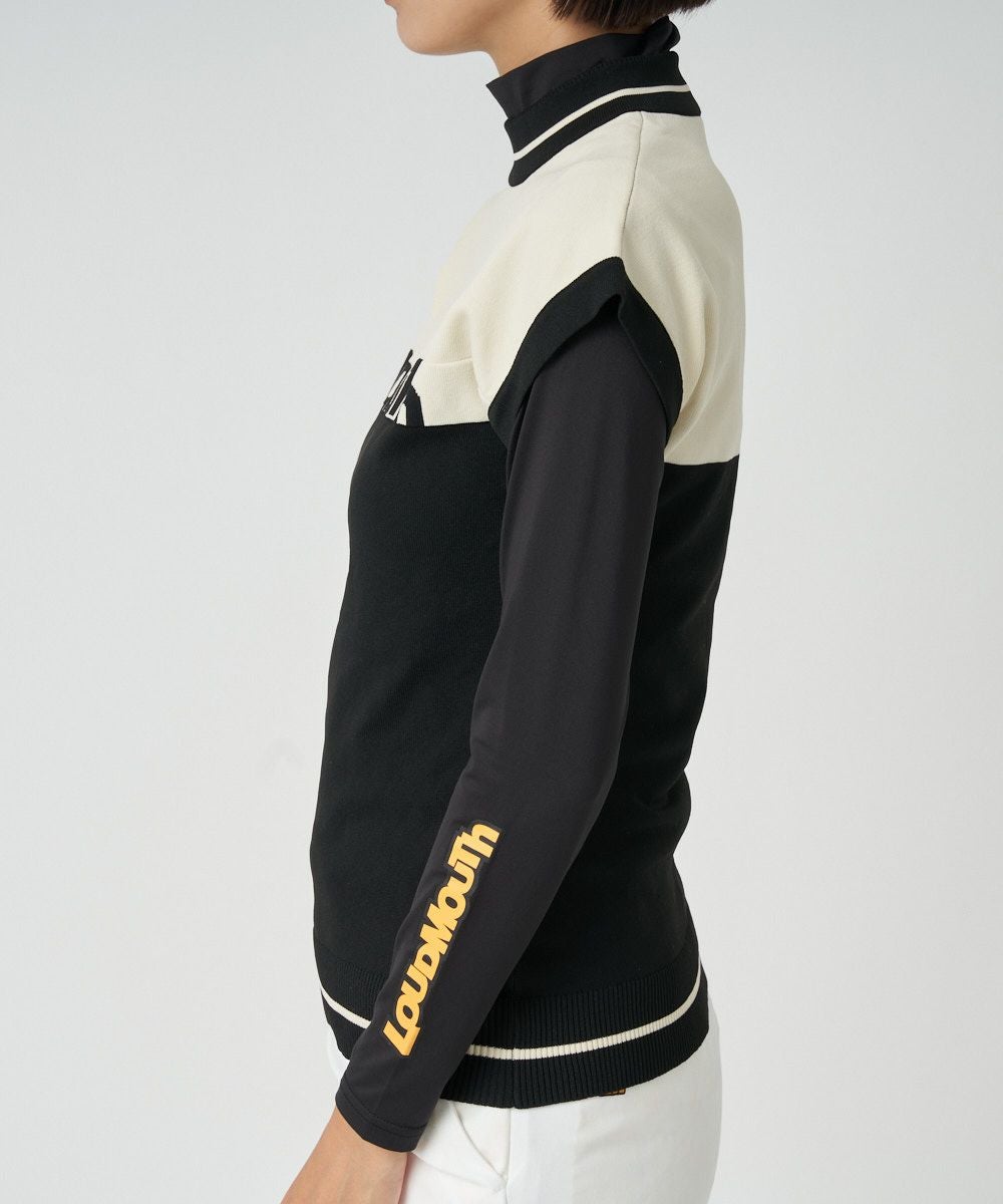 軽くて動きやすい軽量ニット。 配色LOGOデザインのフレンチベストとインナーのセットアイテムです。 ニットスカートとコーディネートしやすい配色展開です。