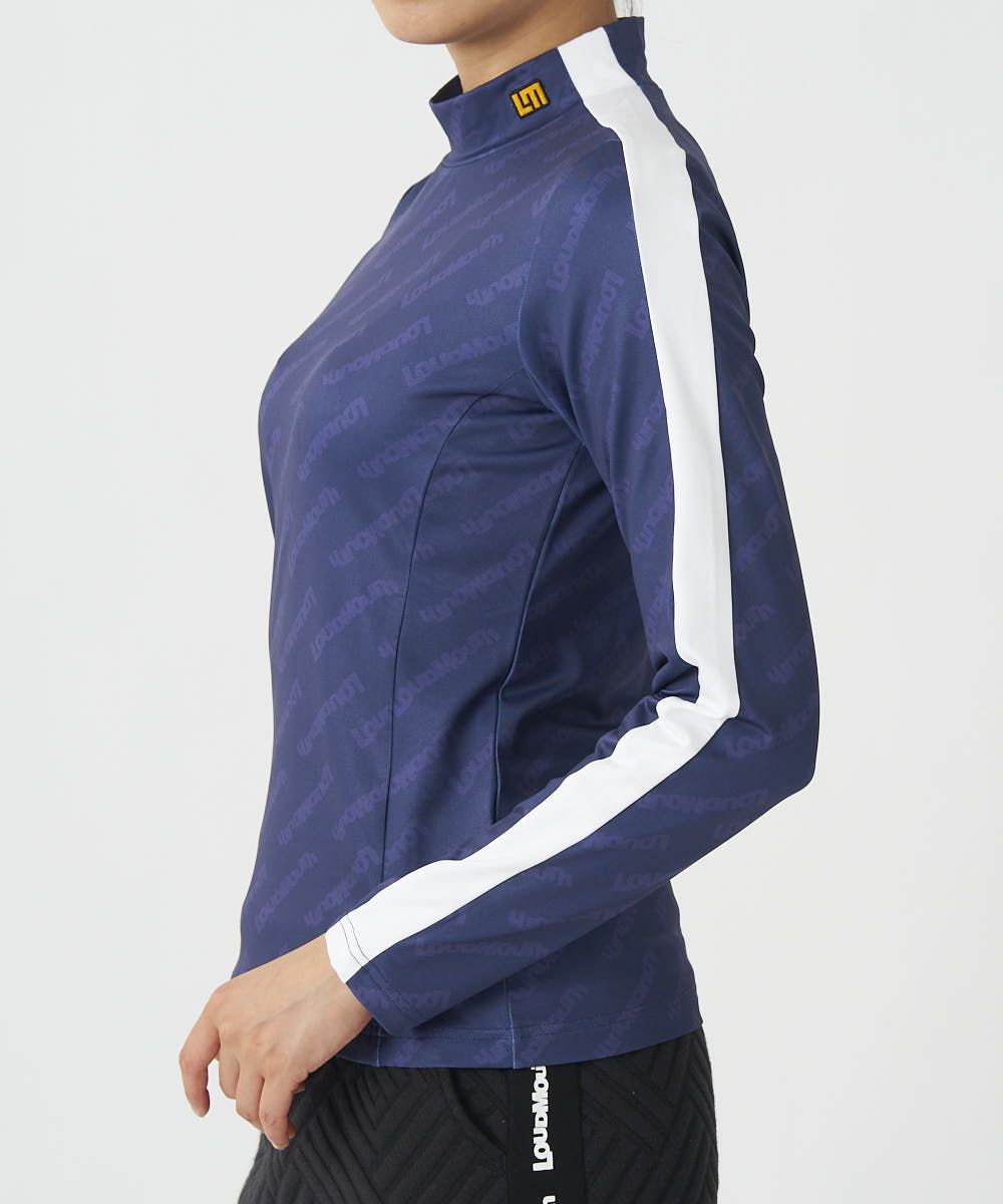 サスティナブルを意識したリサイクルポリエステルの裏起毛素材を使用。 流行りのモックネックシャツ。 コーディネートしやすいトーンオントーン配色で入れたブランドロゴ柄と配色ラインがデザインポイントです。