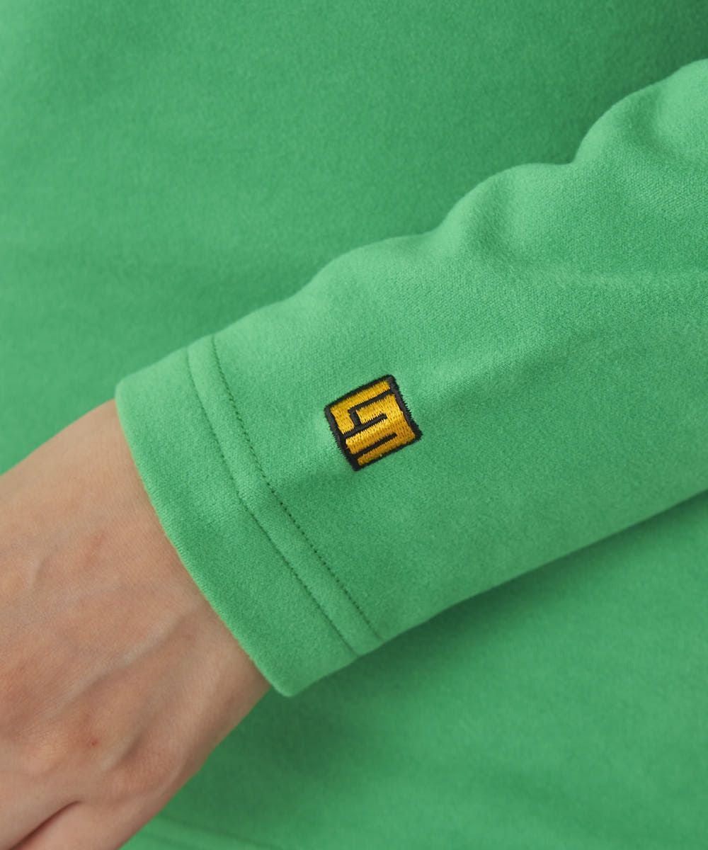 風合いが良く保温性の高い両面スムース素材を使用し、一枚でもインナーとしても着用できる汎用性の高いアイテムです。 胸の配色ラインとLOGOがデザインポイントになっています。