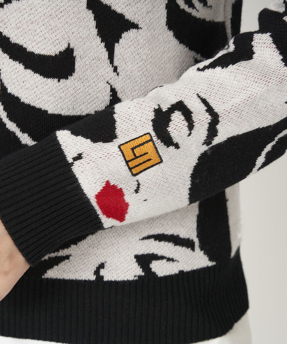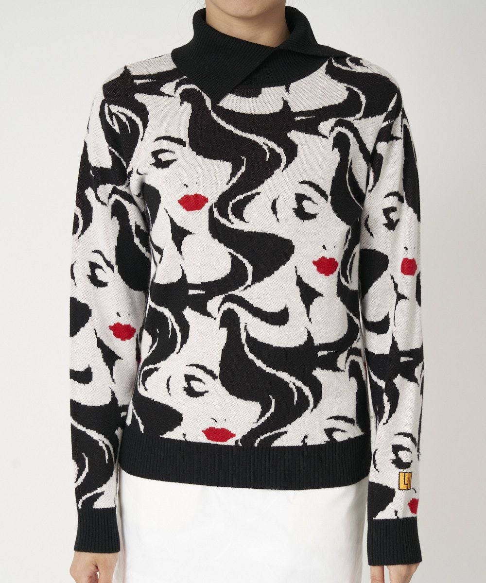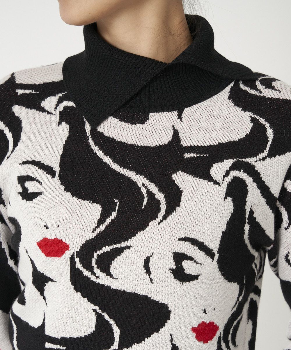 軽くて動きやすいニット素材のセーター。 スリットを入れたデザイン衿で女性らしく、人気のMona柄のカラー展開でインパクトのあるセーターです。