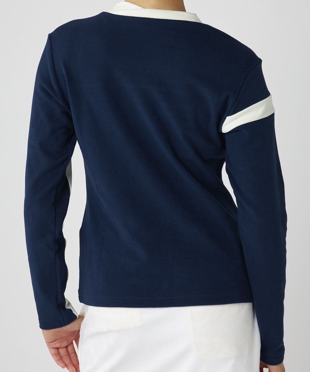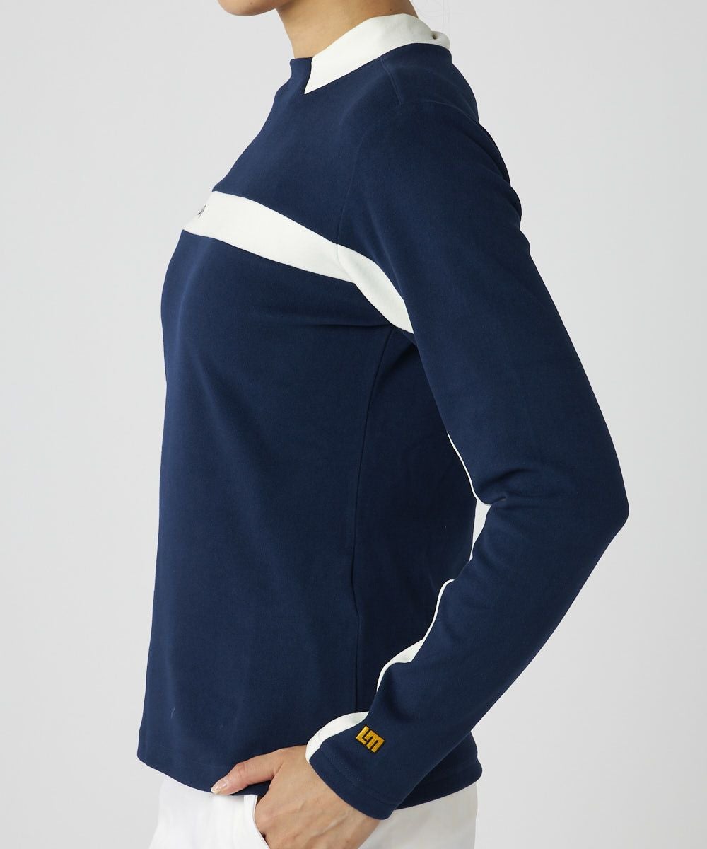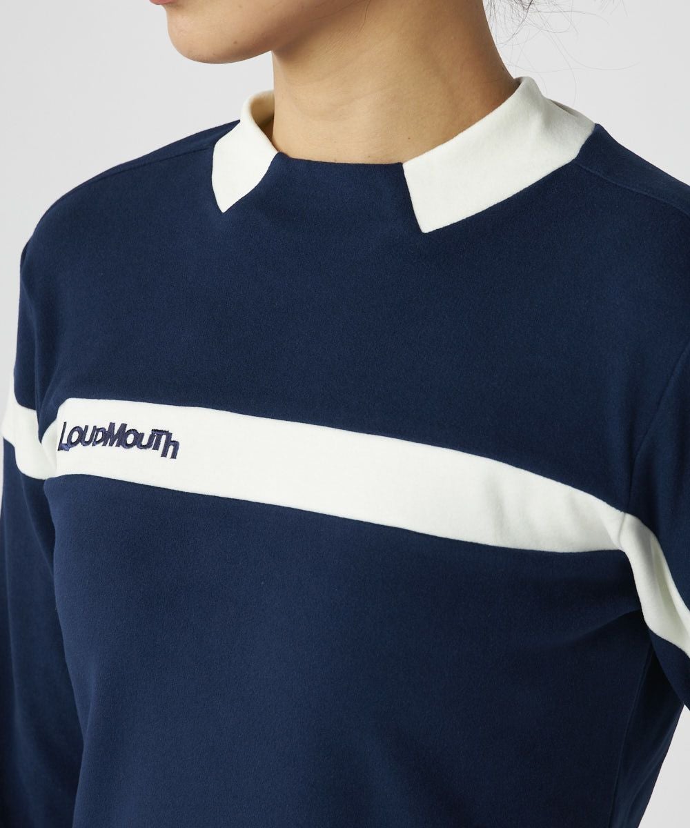 レディース 両面起毛スムース 長袖モックネックシャツ ネイビー