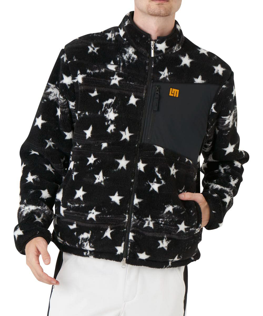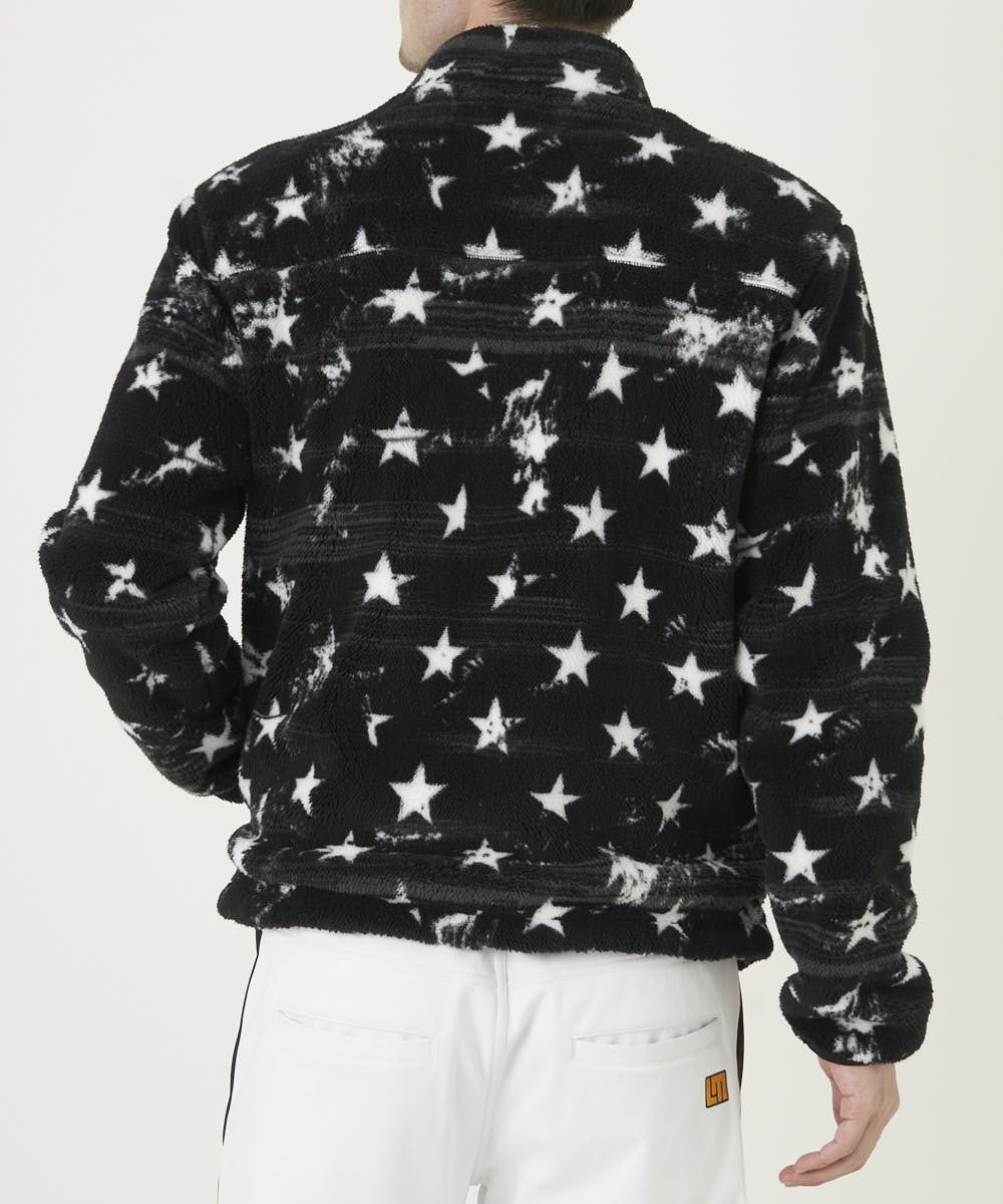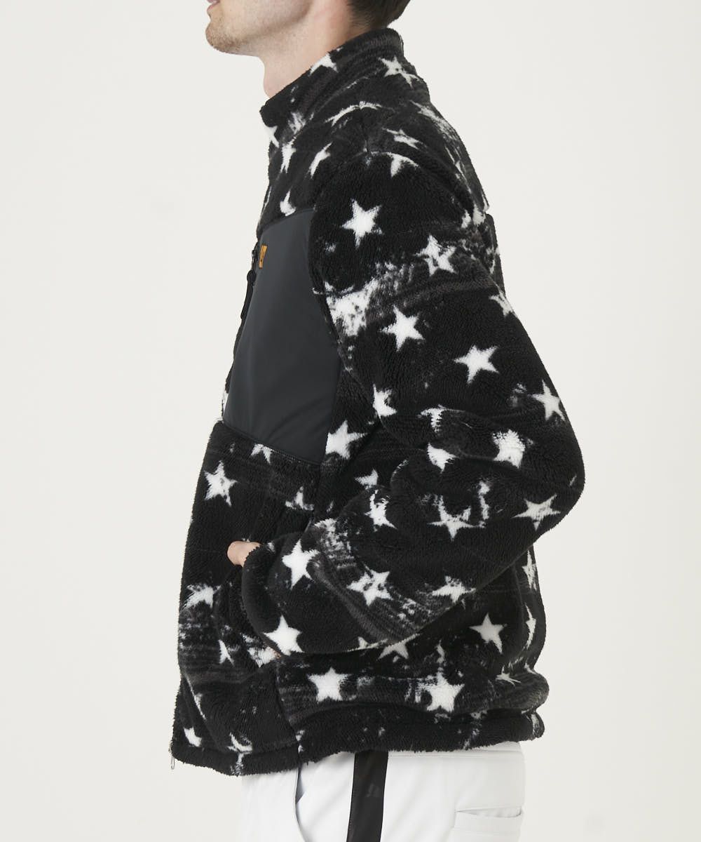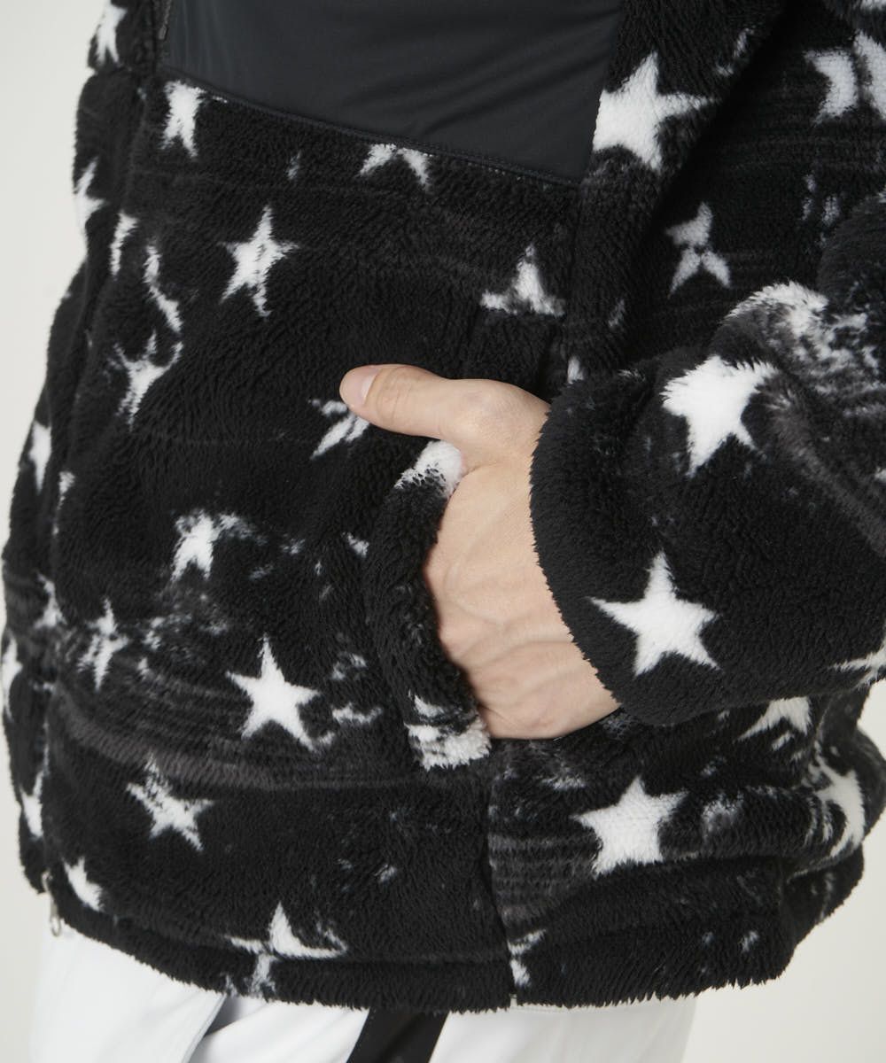 人気のあるStar 柄プリントのボアフリースジャケット。ボアフリース素材と裏地には発熱シルバーフィルムを使用しているので保温性抜群です。マスクや小物を収納できる胸ポケット仕様。
