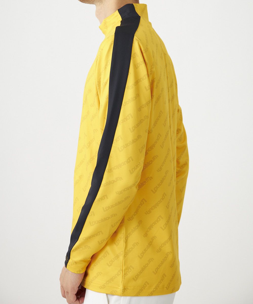サスティナブルを意識したリサイクルポリエステルの裏起毛素材を使用。 流行りのモックネックシャツ。 コーディネートしやすいトーンオントーン配色で入れたブランドロゴ柄と配色ラインがデザインポイントです。