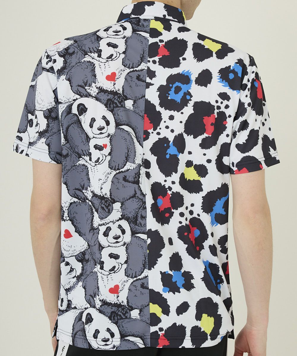 メンズ 半袖ポロシャツ プレミアムカノコ素材 クレイジーパターン ネオンレオパード 吸汗速乾/UV/接触冷感