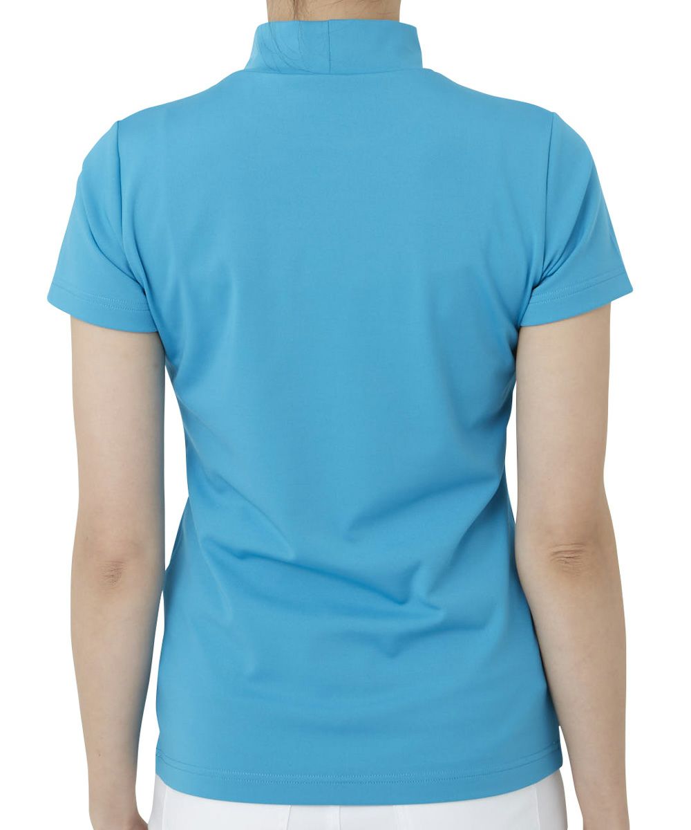 レディース モックネック半袖シャツ(ターコイズ) 吸汗速乾 UV