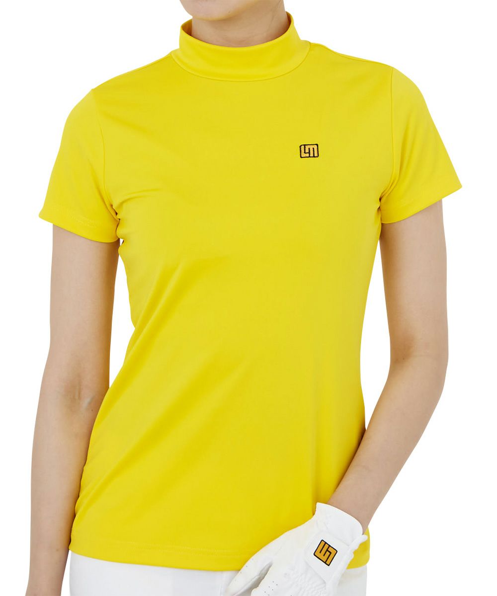 レディース モックネック半袖シャツ(イエロー) 吸汗速乾 UV
