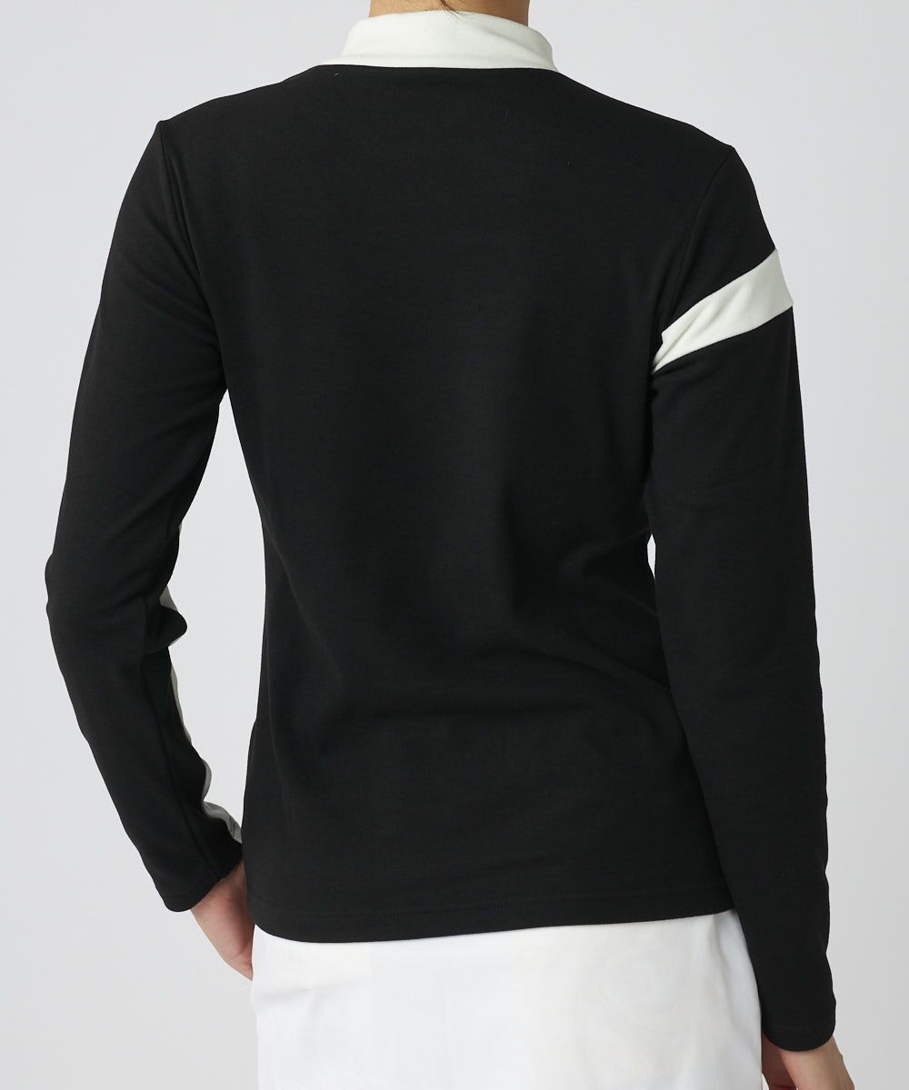 レディース 両面起毛スムース 長袖モックネックシャツ ブラック