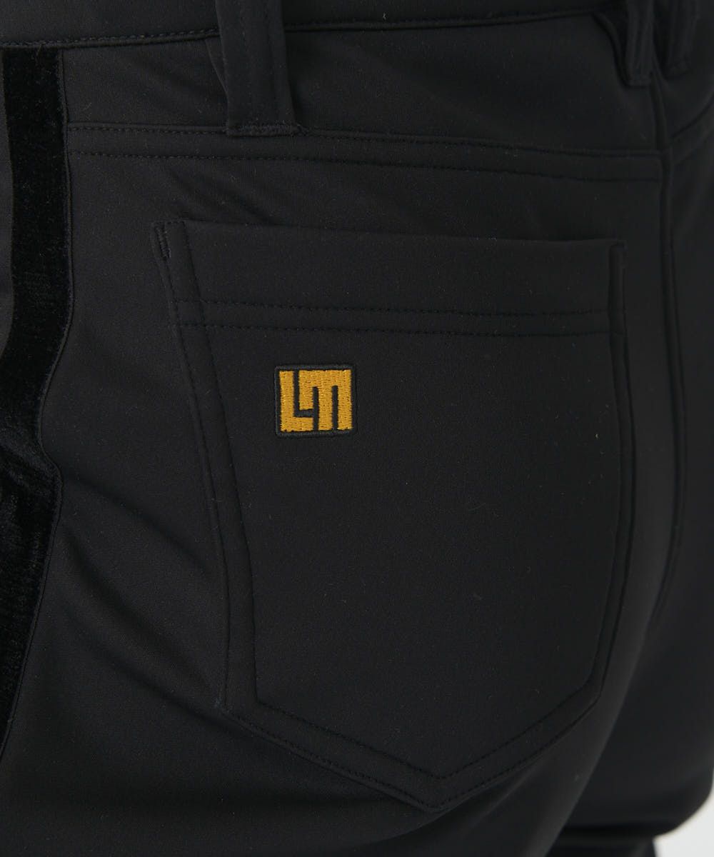 蓄熱4WAY素材のボンディングパンツ。 ストレッチ性のあるカットソー素材と裏フリース素材にフィルム加工を施した3層ボンディング素材を使用し、足長効果のあるベルベットテープラインデザインがポイントです。