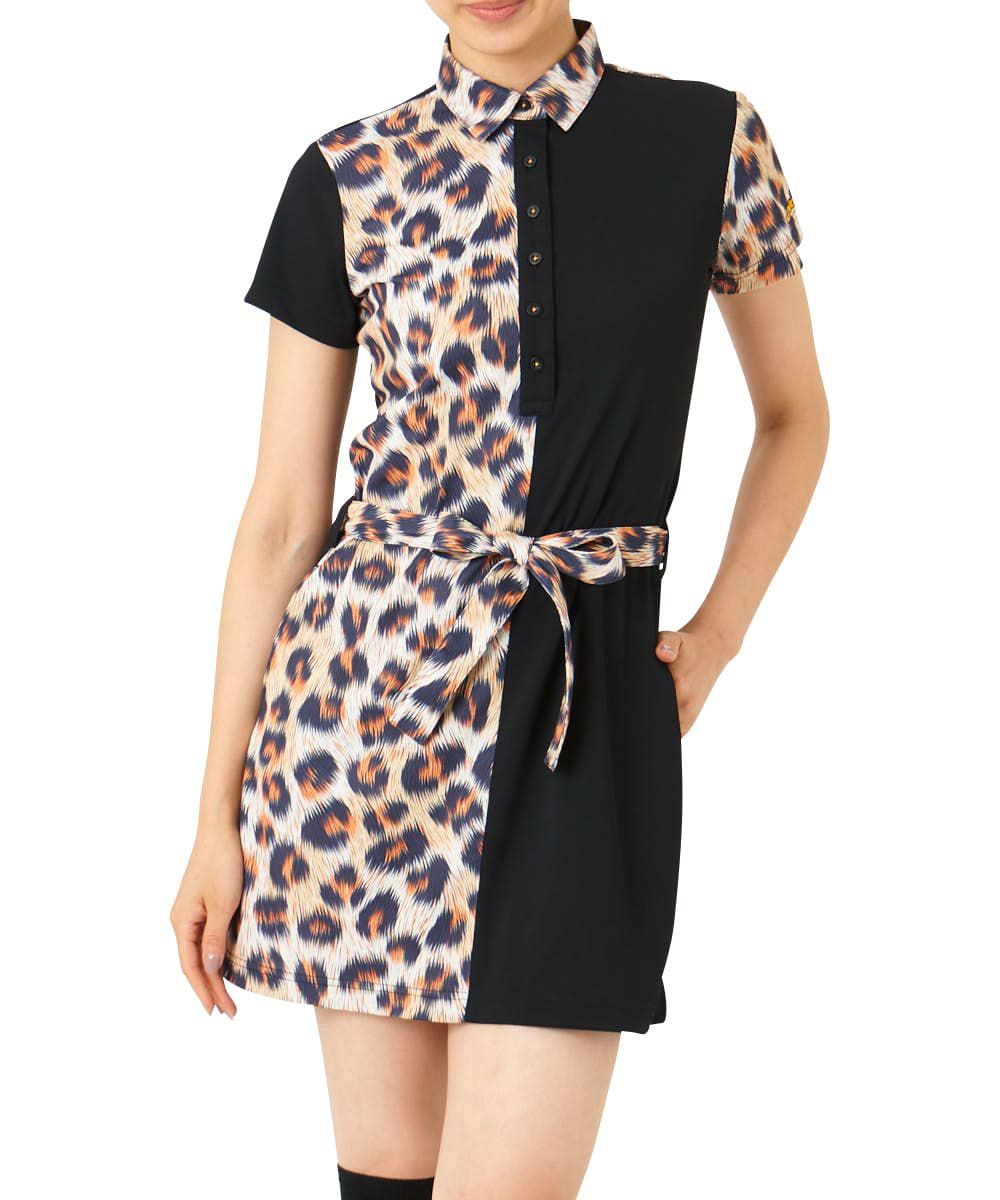 レディース 切替ワンピース ファジーレオパード