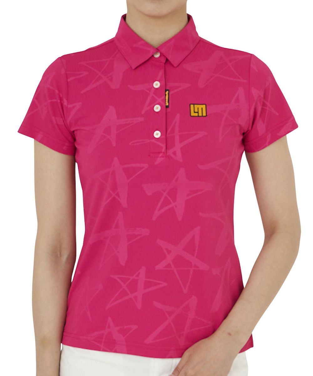 レディース 半袖ポロシャツ シューティングスター柄エンボス ピンク 吸汗速乾 UV
