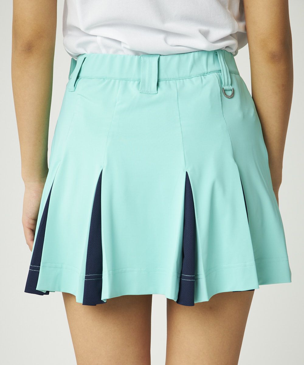 サラっとした肌触りのECO防透スムース素材を使用した無地配色スカート。部分配色メッシュがデザインポイントのフレアスカート。