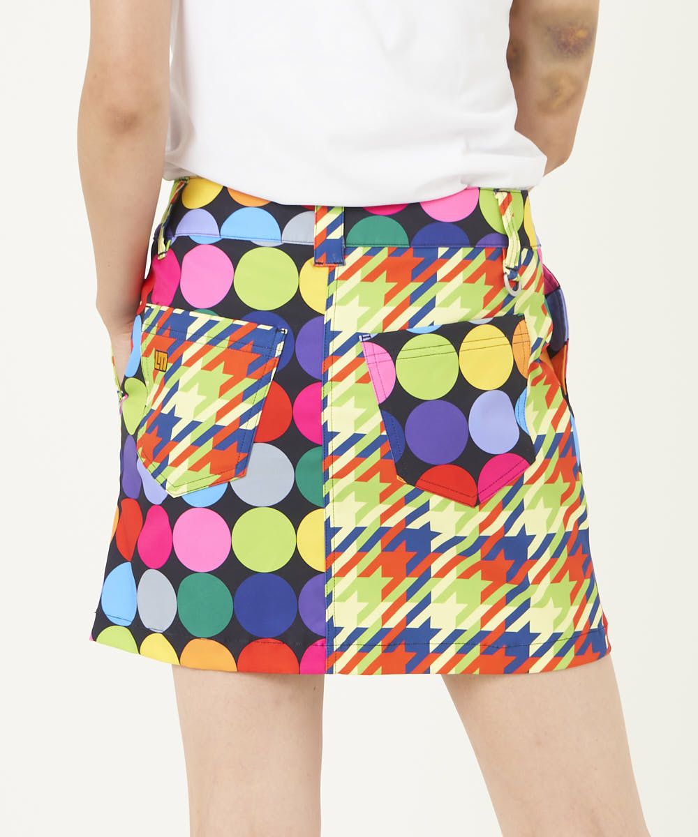 レディース クレイジーパターンインナー付きスカート ディスコボールズブラック
