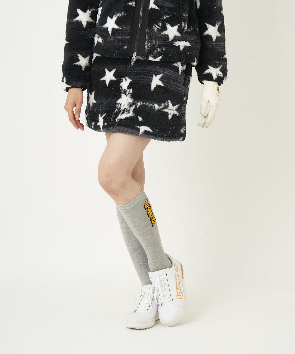 裏フリースボア素材の保温性抜群のスカート。ラウドマウスらしいインパクトのある柄で展開。