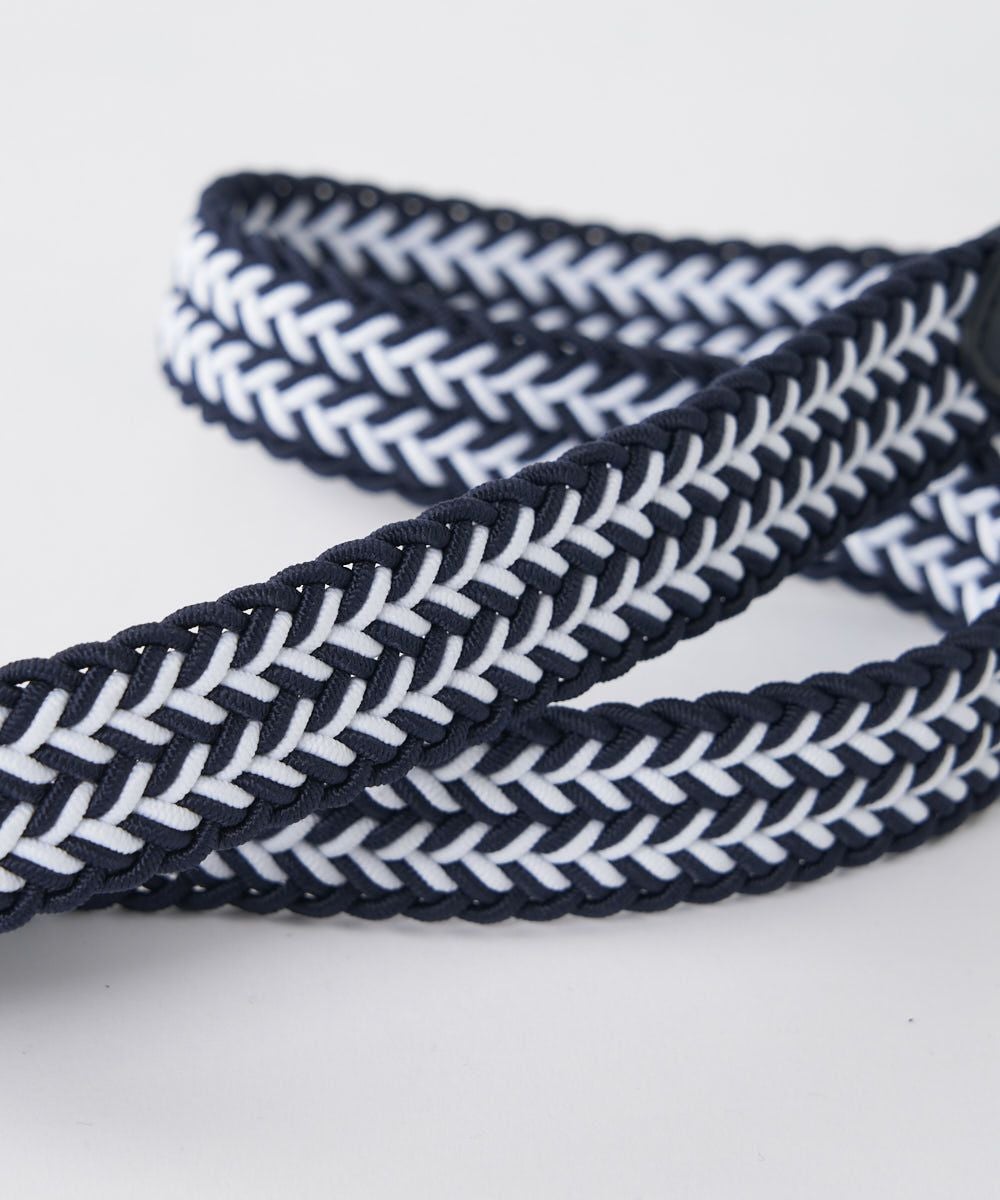 伸縮性のあるゴムベルトなので、締め付け感がストレスフリー着け心地。メッシュだから、ベルト穴はお好きな位置で止められます。ストレッチ性があるゴムベルトは、体にフィットして動きやすく、プレー時も快適です。レザーベルトの締め付け感が苦手な方におすすめです。フェイクレザーを部分使いしているので、カジュアルになりすぎず、上品なスタイルにも合わせやすいデザインです。