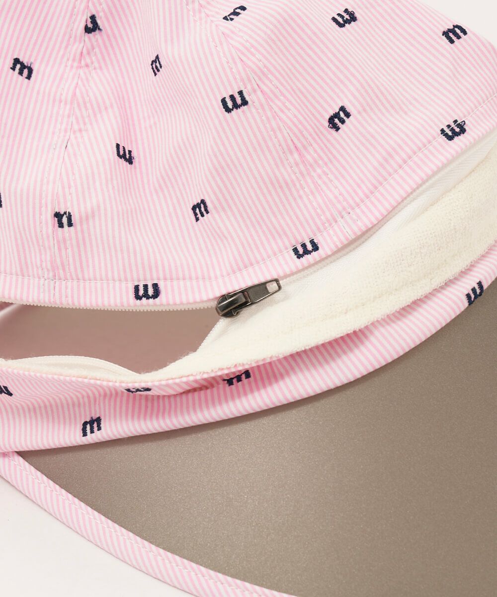 ツバ部分はUVセル素材を採用。頭部のファスナーでバイザーとキャップ、簡単にスタイルチェンジが出来ます 。フィット感を簡単に調整できるベルクロ仕様です。