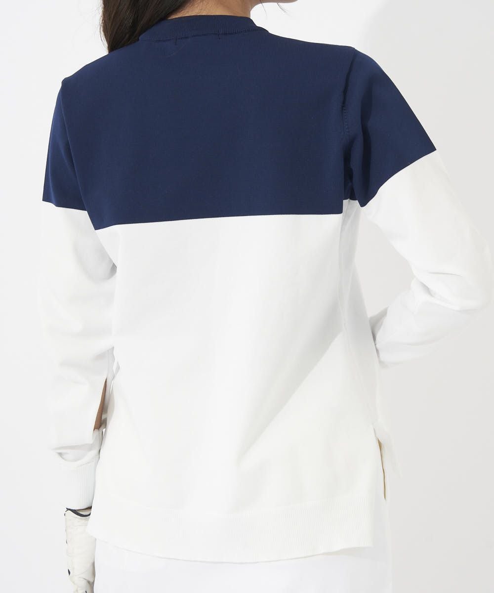 軽くて着心地の良い軽量ニットセーターです。ツートン切替デザインがコーディネートのポイントになります。 少し大きめのシルエットになっていて、カジュアルライクに着こなせます。