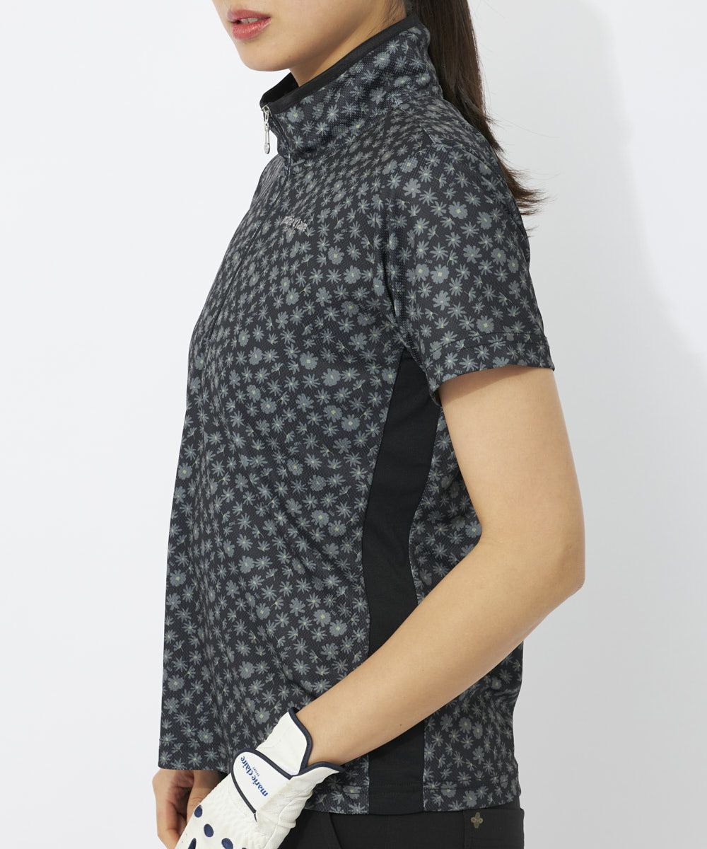 主張しすぎないお花柄シャツでコーディネートのアクセントに◎薄くてサラっとしたポリエステル素材で吸汗速乾、UVカット、接触冷感と高機能な素材です。さりげない小花柄が上品な一枚です。さりげない脇の切り替えが細見えに効果的!