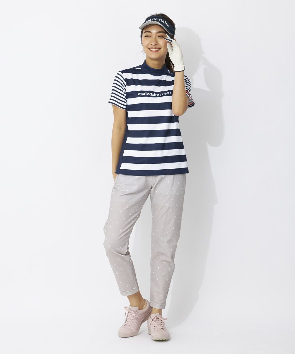 レディース 半袖モックネック