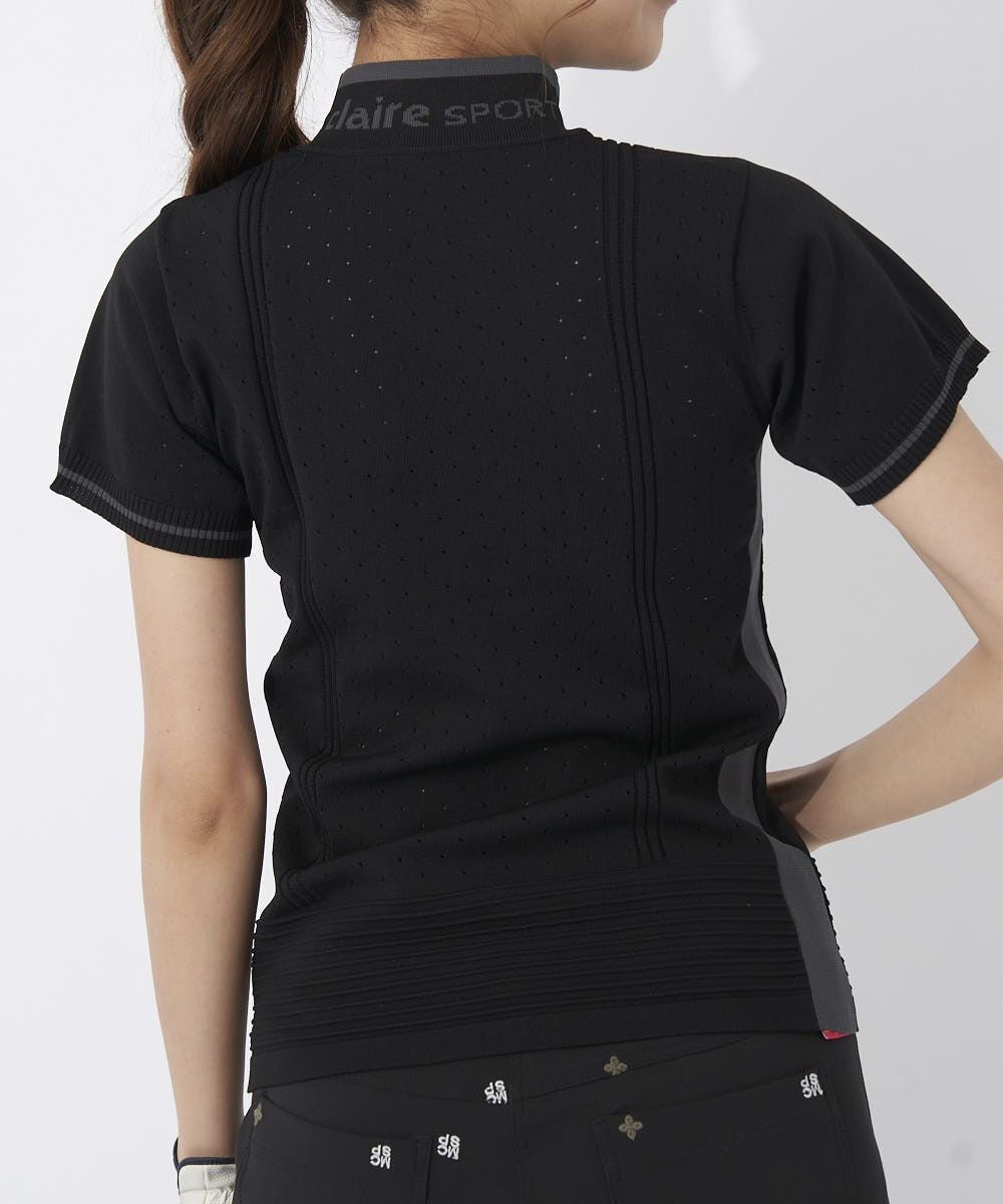 シンプル無地ライクなニットモックシャツはメッシュと立体編み柄でスポーティー♪