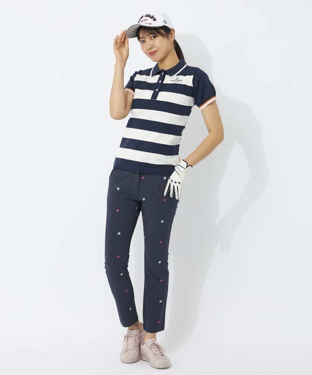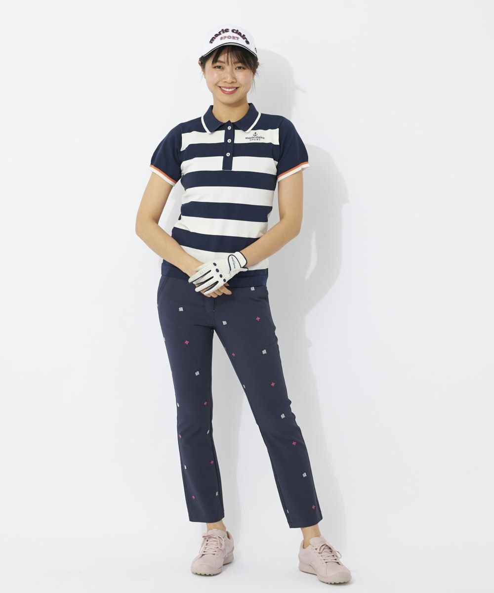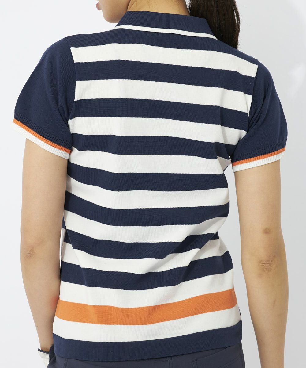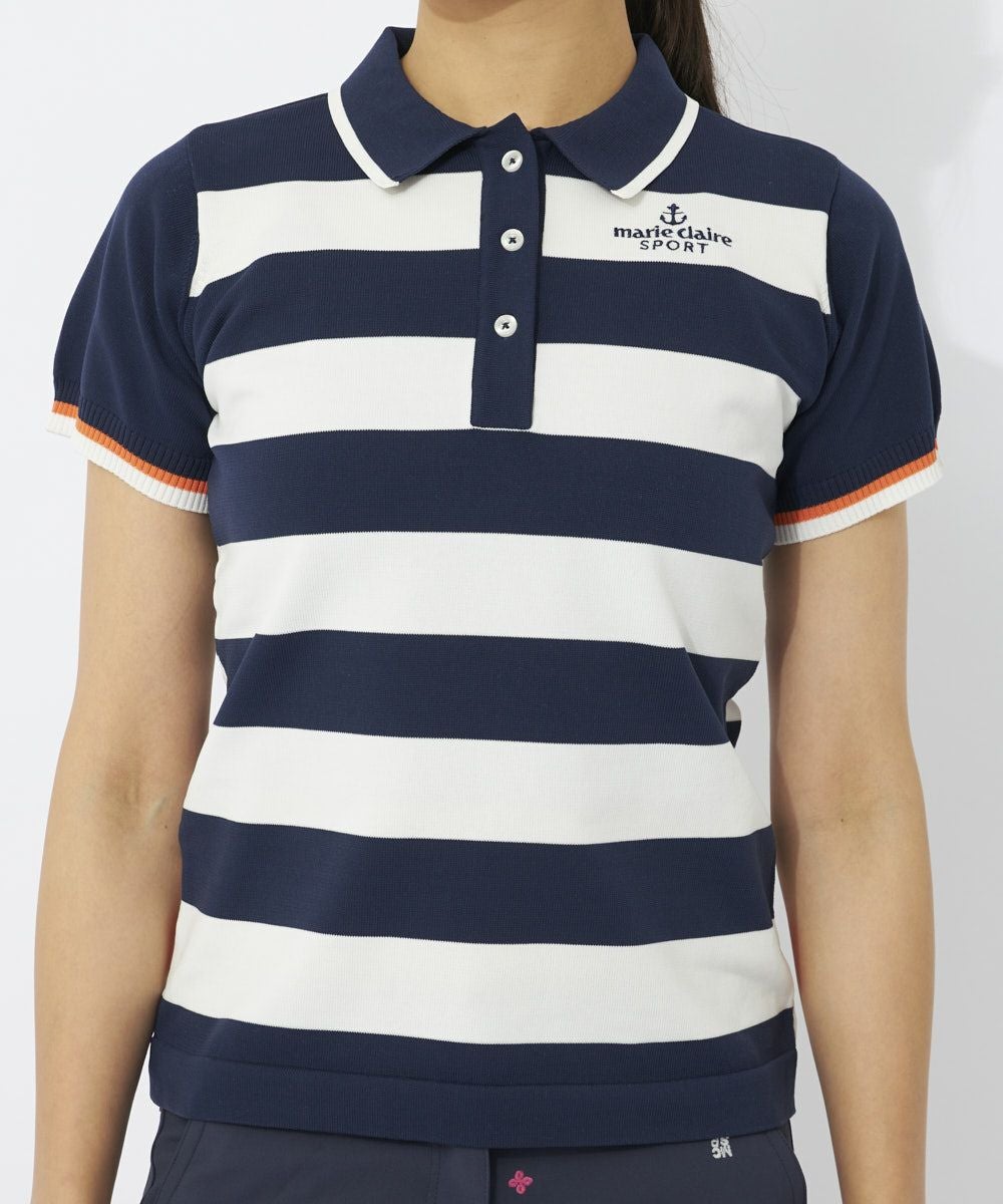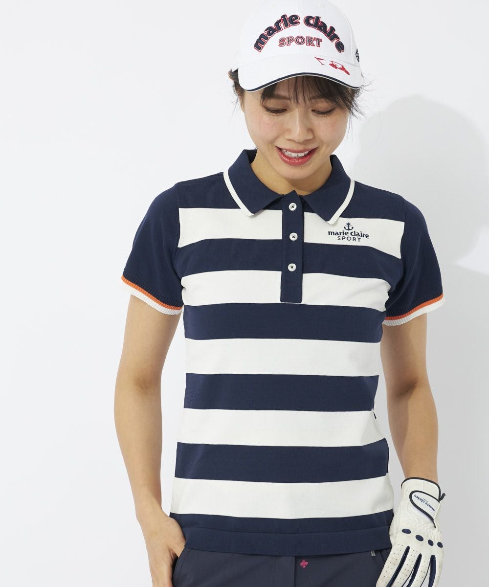大胆なボーダーがニットならでは!マリンテイスト感満載のニットポロシャツ。とても軽くて、軽撥水も期待できる万能ニットを使用しています。ポリエステル100%のサラっとした肌触りで暑い季節まで楽しめます。