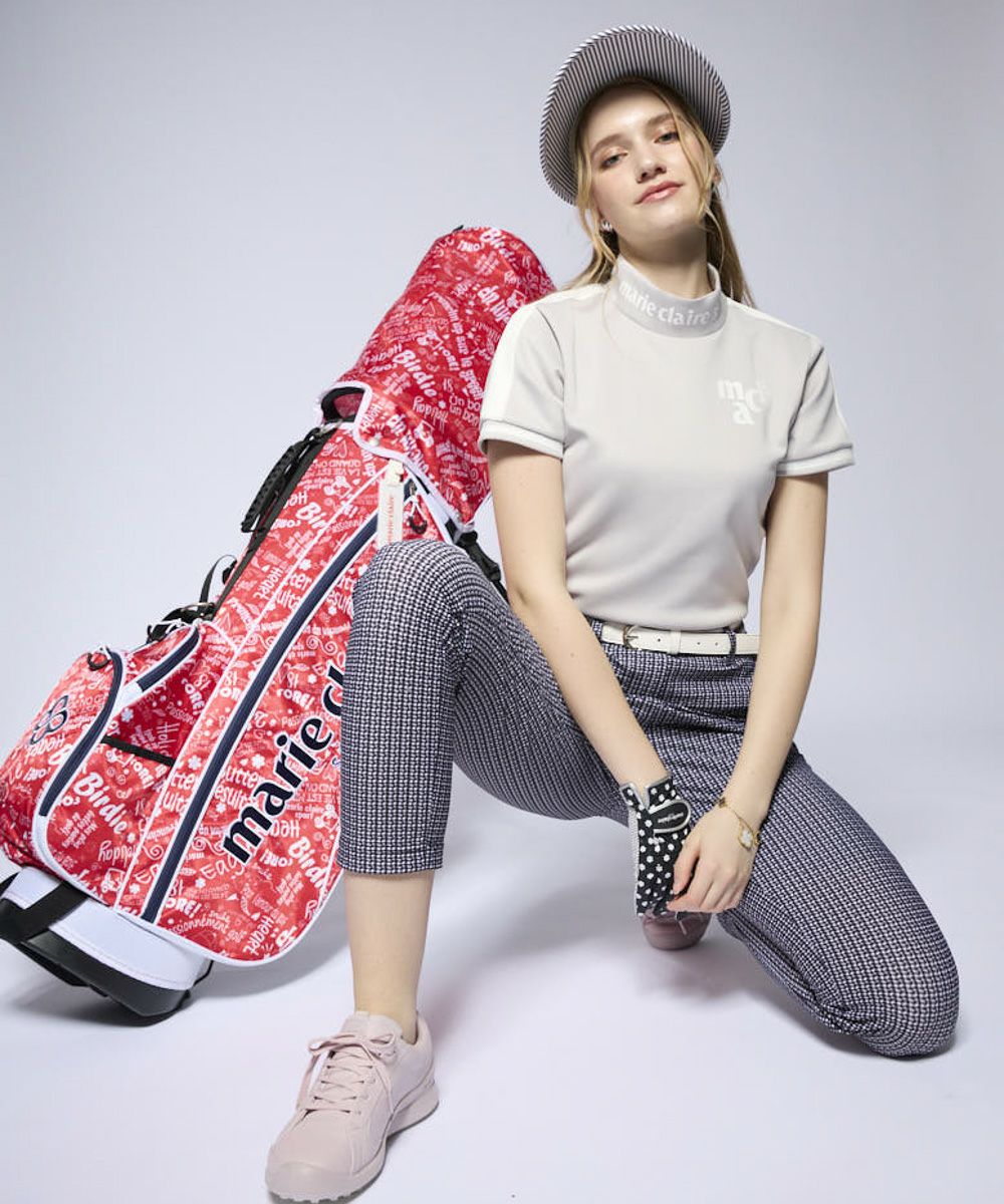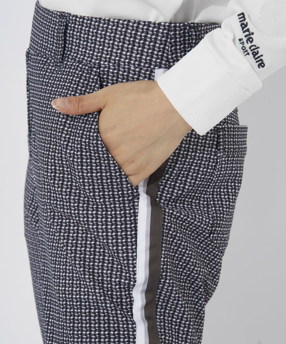 肌離れの良いサッカー素材を使用しております。サイドのオリジナルテープがスポーティーで細見え効果が期待できます。