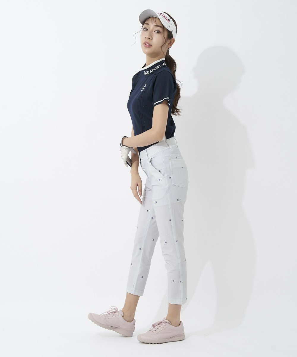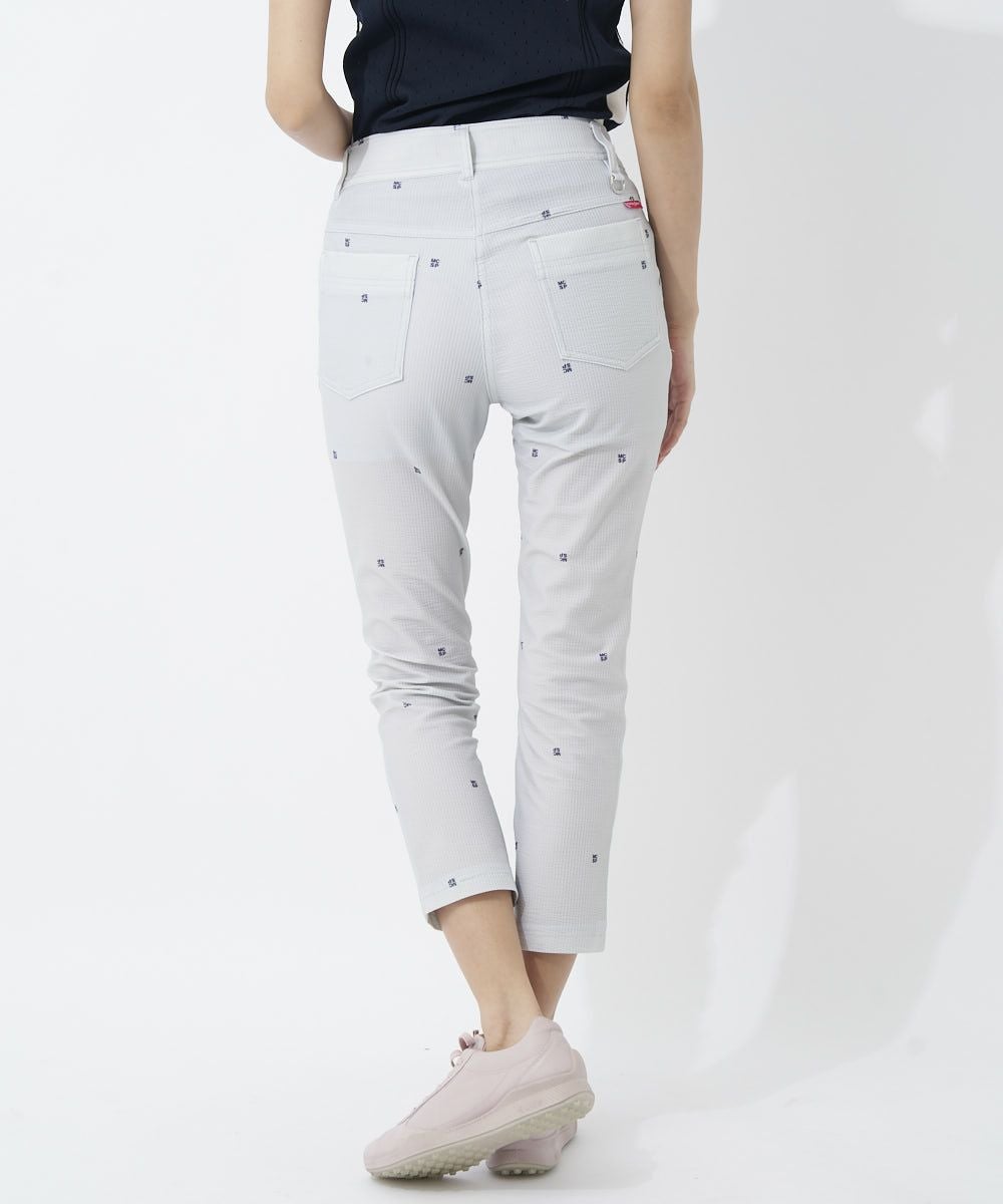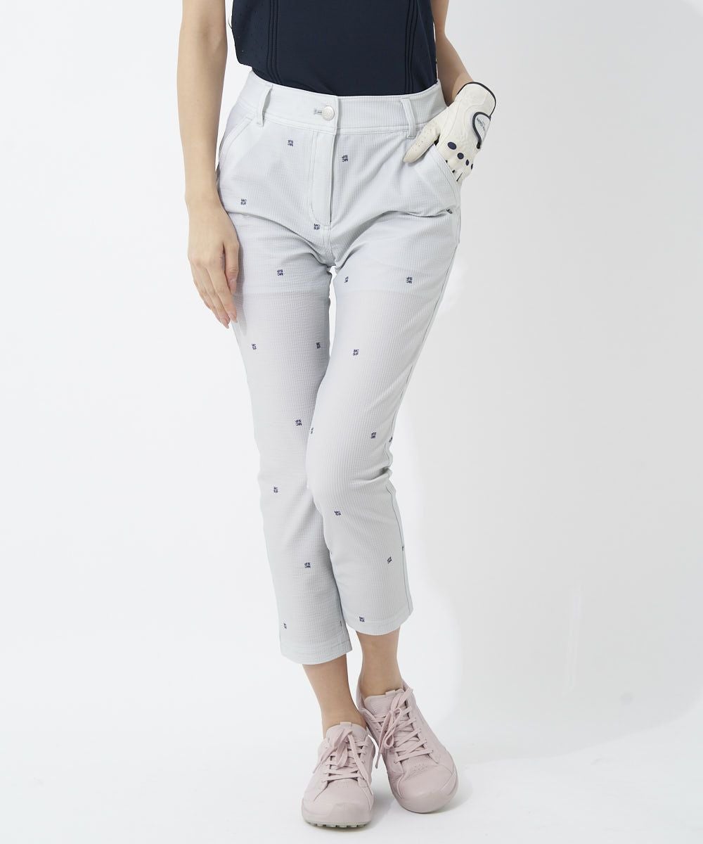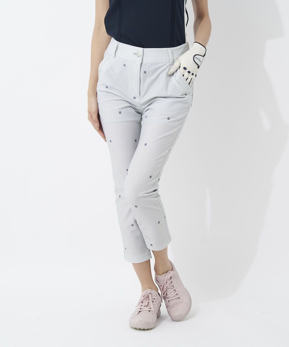 ドット刺繍が上品な印象のストレッチパンツ♪立体的なサッカー素材でサラっと爽やかな着心地です。