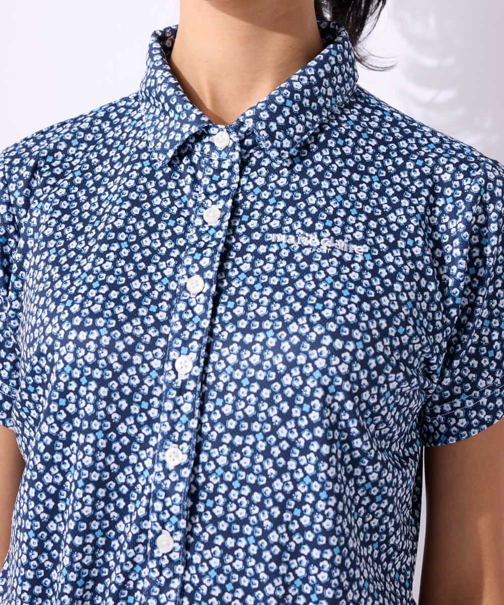 ひんやり感が実感できる接触冷感素材を使用しています。パイピングをきかせた小花柄シャツです。