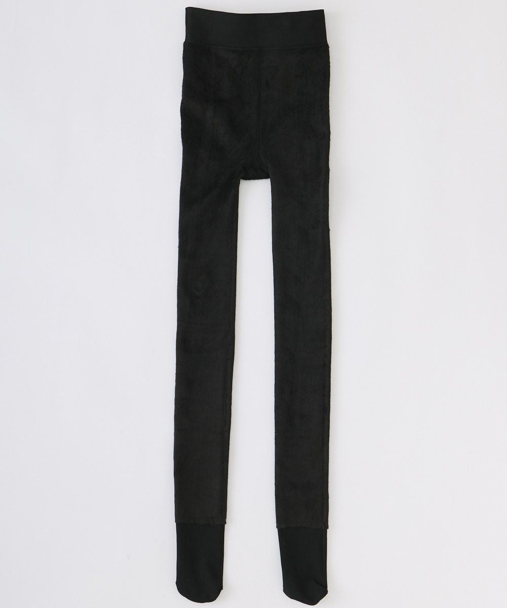 透け感のあるシアータイツにふんわりしたボア裏起毛生地で1200デニール相当の厚みを作り出し、軽やかな透明感と暖かさの両方を実現したストッキング風タイツ。足首から下は薄手になっているので、靴を履いてもゴワゴワしづらいのが嬉しいポイント。