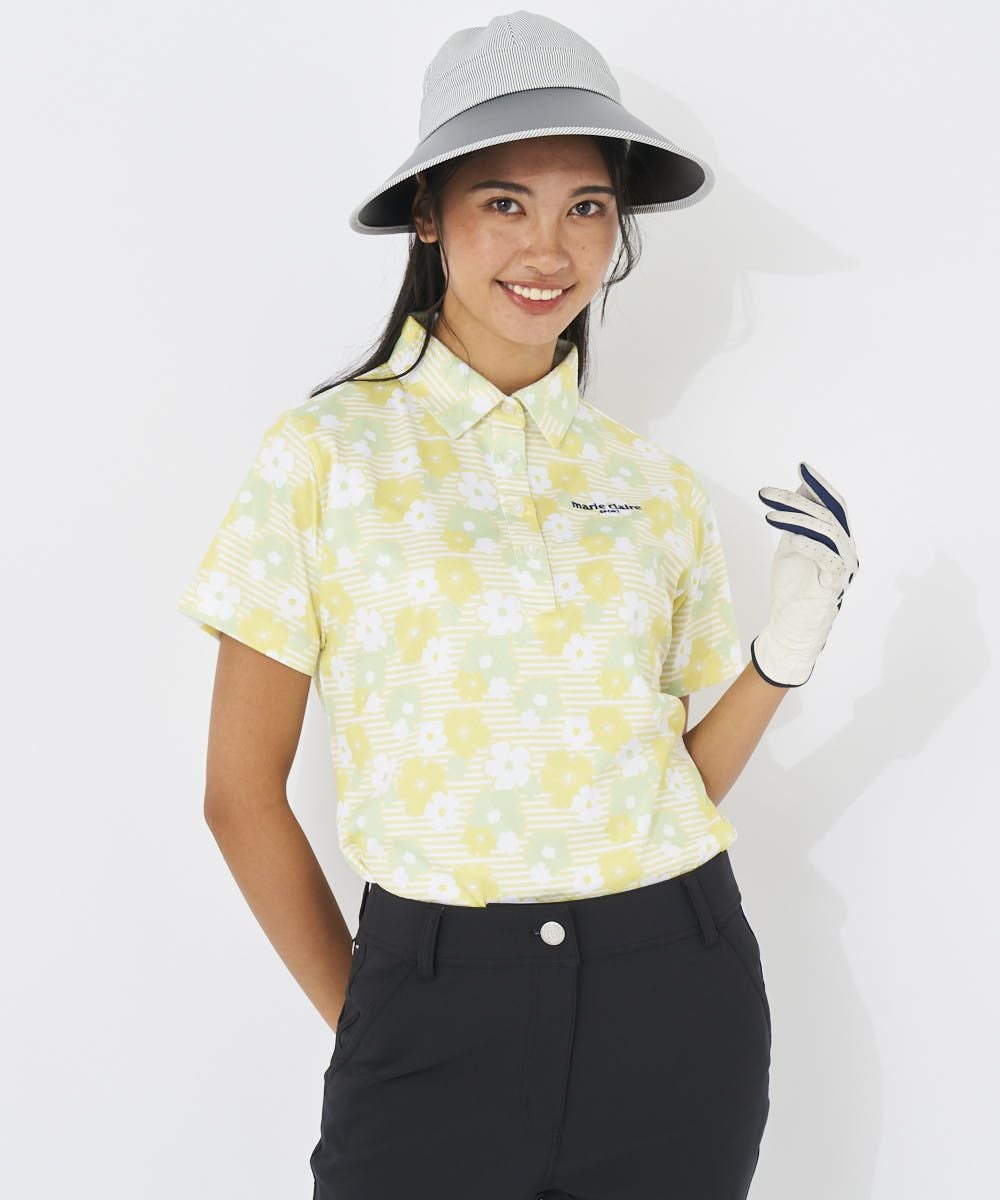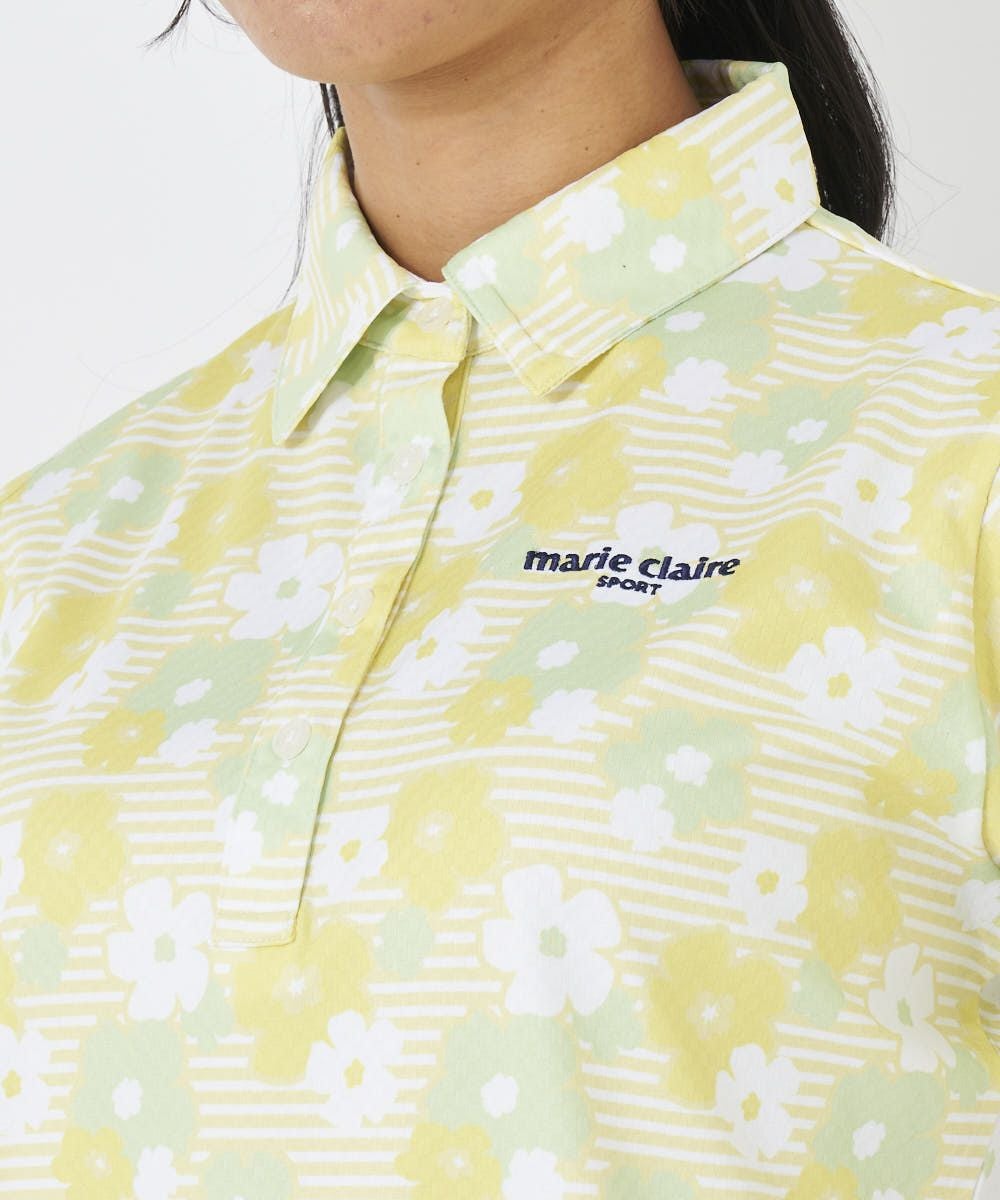 マリ・クレールらしい大き目の花柄がかわいいシャツ。程よい立体感とサラっとした肌触りで汗ばむ季節も快適に着ていただけます。