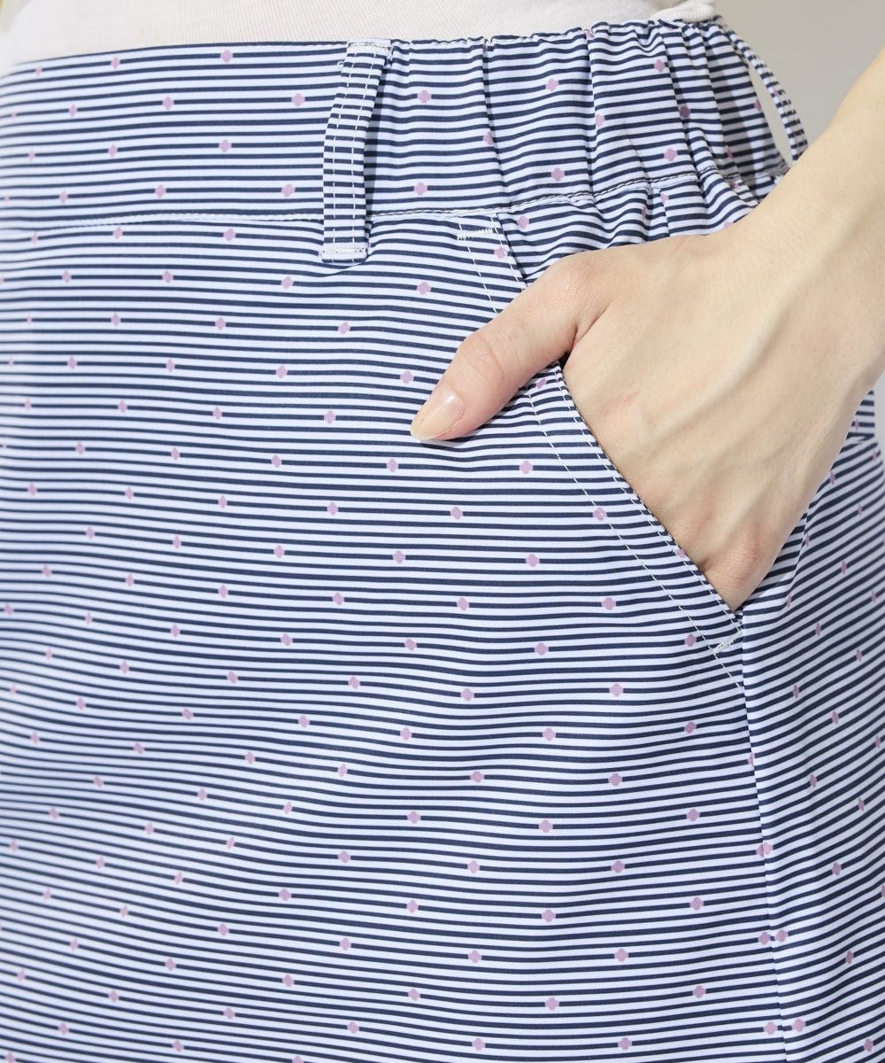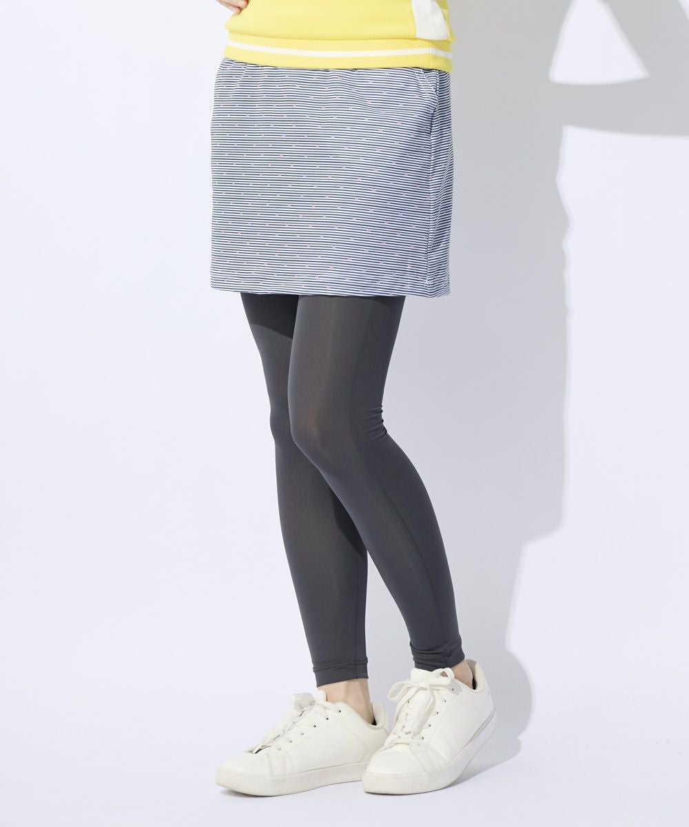 ストレッチ性が高く、縦に地模様が入っている素材にプリントを施しているのでとても高級感があります。根強い人気のレギンス付きスカートはすっぽり履けて便利です。