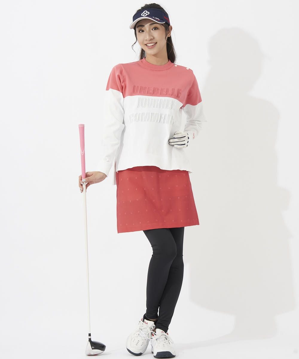 UVカット効果とストレッチ性のあるレギンス付きスカートです。日差しの強いゴルフ場でも安心してプレイできます。スカートは動きやすさを考慮し、ストレッチ性のある生地を使用しています。美しいシルエットと履き心地の良さが魅力の商品です。