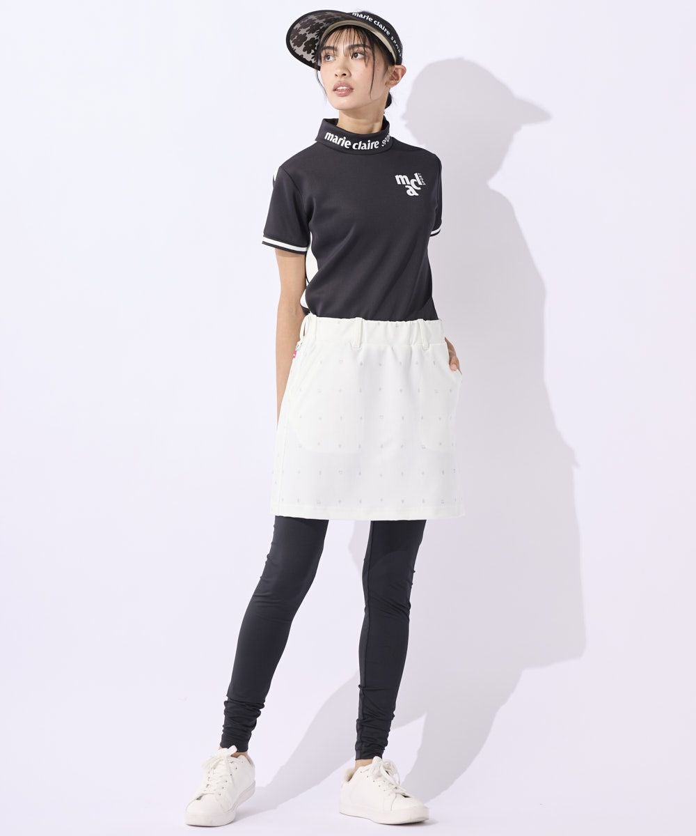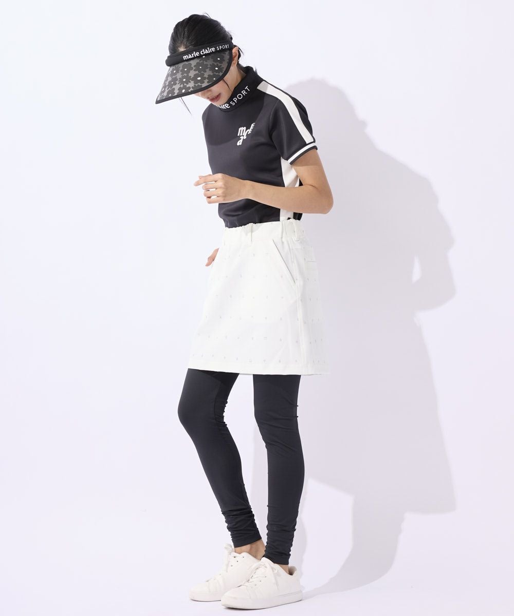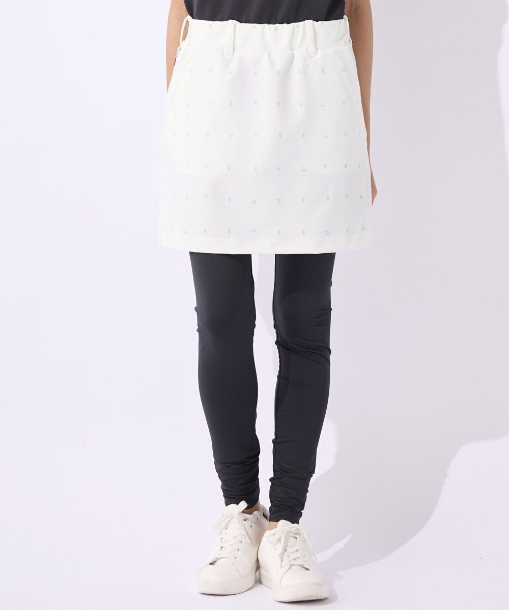 UVカット効果とストレッチ性のあるレギンス付きスカートです。日差しの強いゴルフ場でも安心してプレイできます。スカートは動きやすさを考慮し、ストレッチ性のある生地を使用しています。美しいシルエットと履き心地の良さが魅力の商品です。