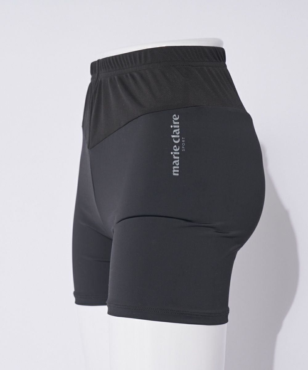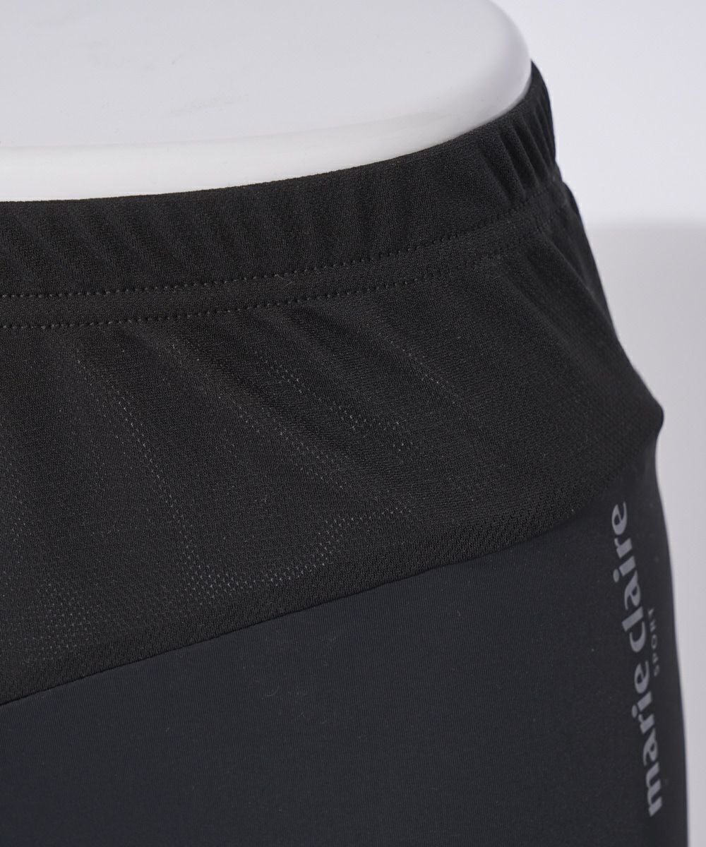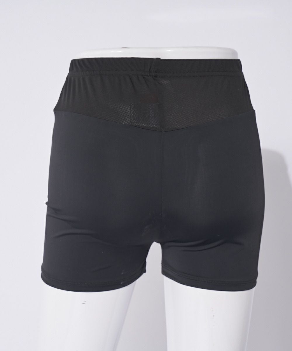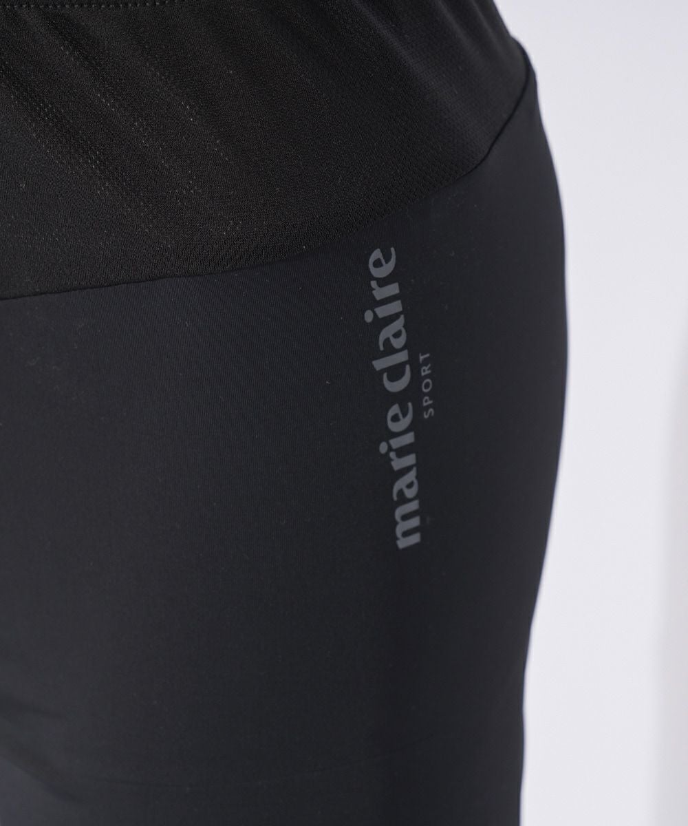 接触冷感素材と、お腹部分がメッシュ切替になっているショート丈レギンスです。スカートやショートパンツのコーディネートにお勧めです。